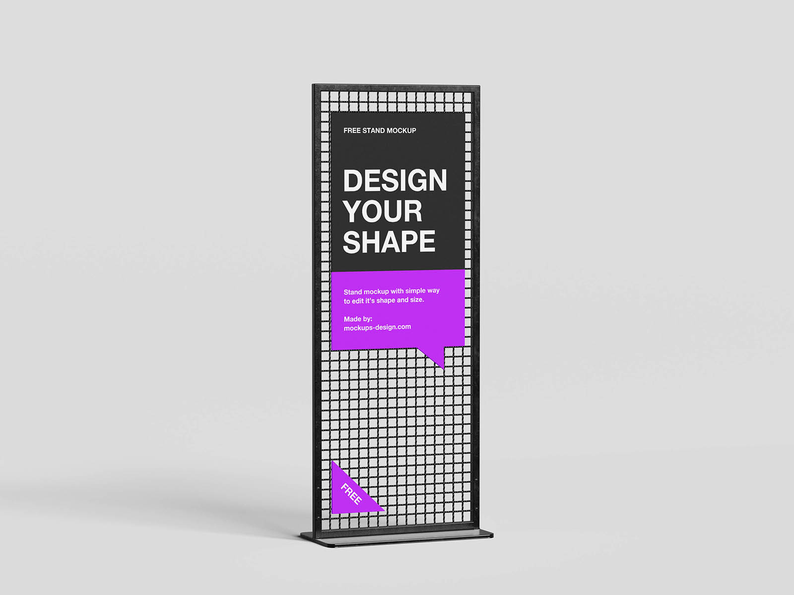This free-standing display mockup is designed to present vertical signage, promotional panels, and wayfinding graphics in a clean, controlled studio setup. The mockup focuses on the physical structure of a tall floor stand — its proportions, base stability, and front-facing display area — making it ideal for showcasing designs intended for events, retail spaces, exhibitions, or indoor advertising. The set includes four PSD files, allowing you to present your artwork from multiple angles and configurations.