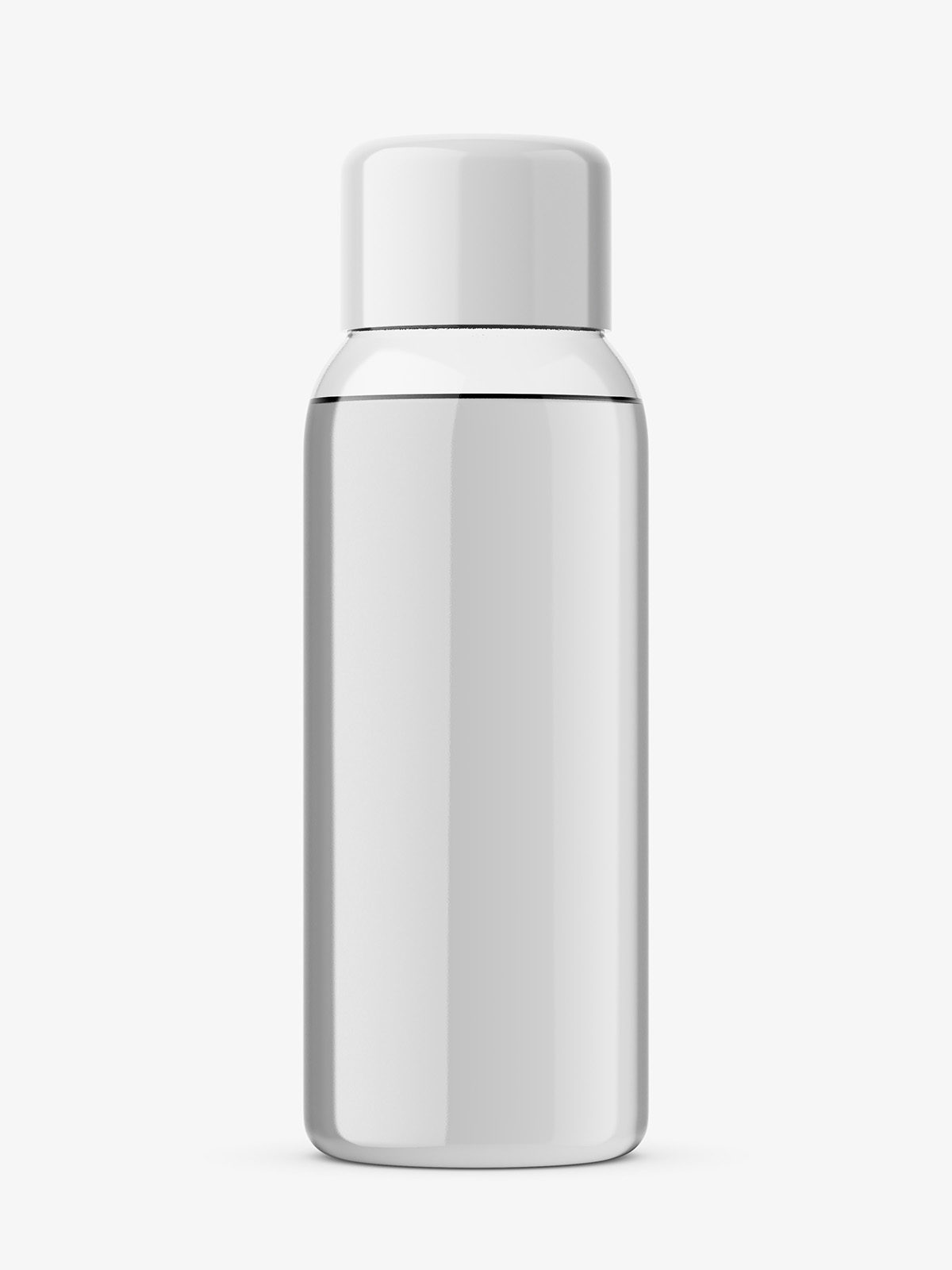 Universal transparent cosmetic bottle with white cap. Most commonly used in beauty industry as a package for mists, fragrances, conditioners and other beauty products.