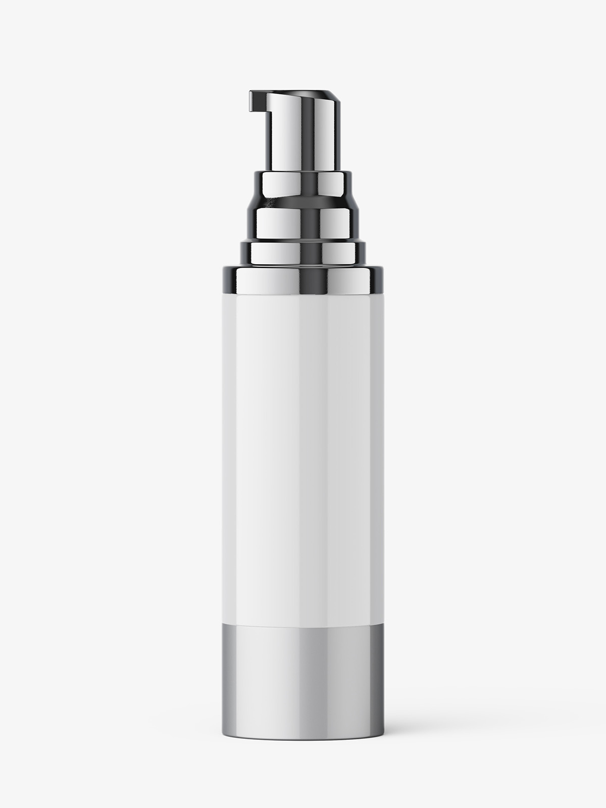 Great and realistic mockup of an airless bottle with metallic pump and ring. Color of all elements can be changed, and cap can be turned on and off. This mockup is very easy to use and will bring your design to life!