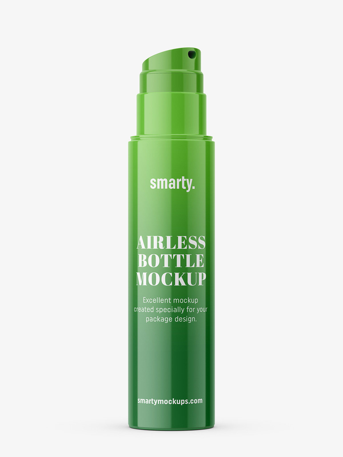 Universal airless glossy bottle mockup. Prepared in high resolution with ability to customize it to your needs. Easy and fun to use.