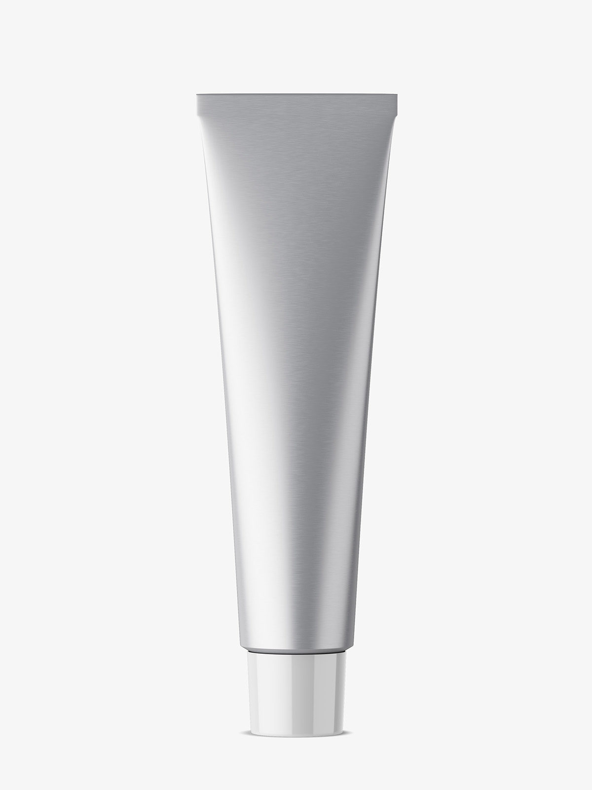Aluminium cosmetic tube, usually used in cosmetics or pharmaceutical industry as packaging for body, hand care lotions or tooth pastes. Mockup prepared with an option for an easy change of the cap color.