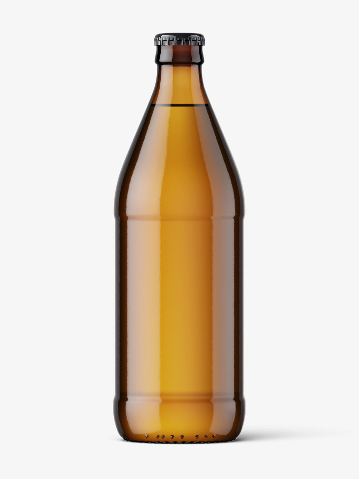 Brown (amber) beer bottle mockup prepared to edit paper and metallic label. Every element has it’s own light layer that can be customized.