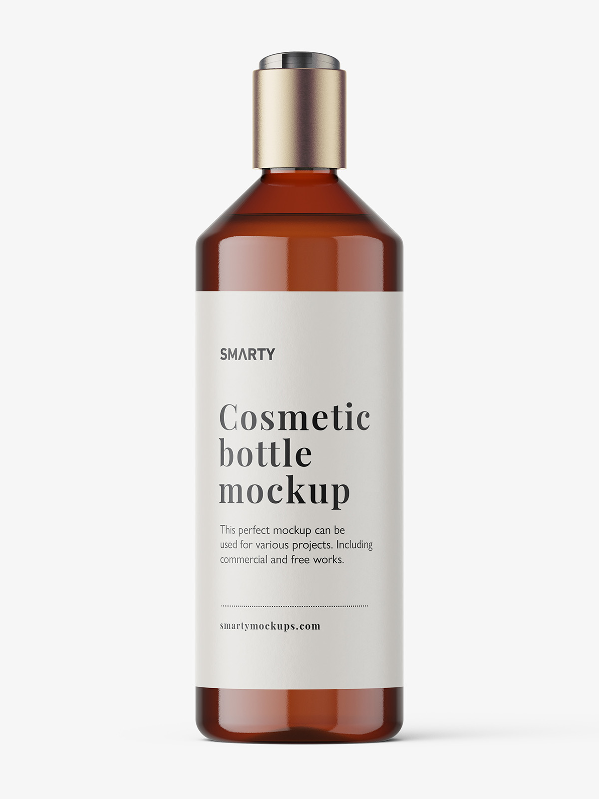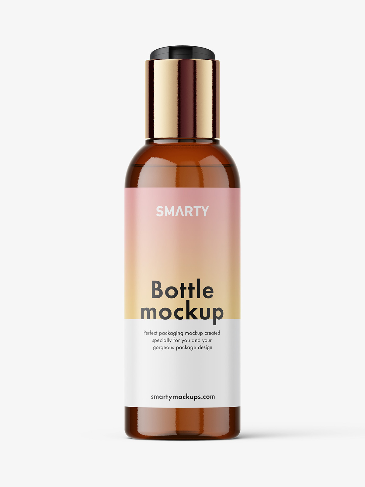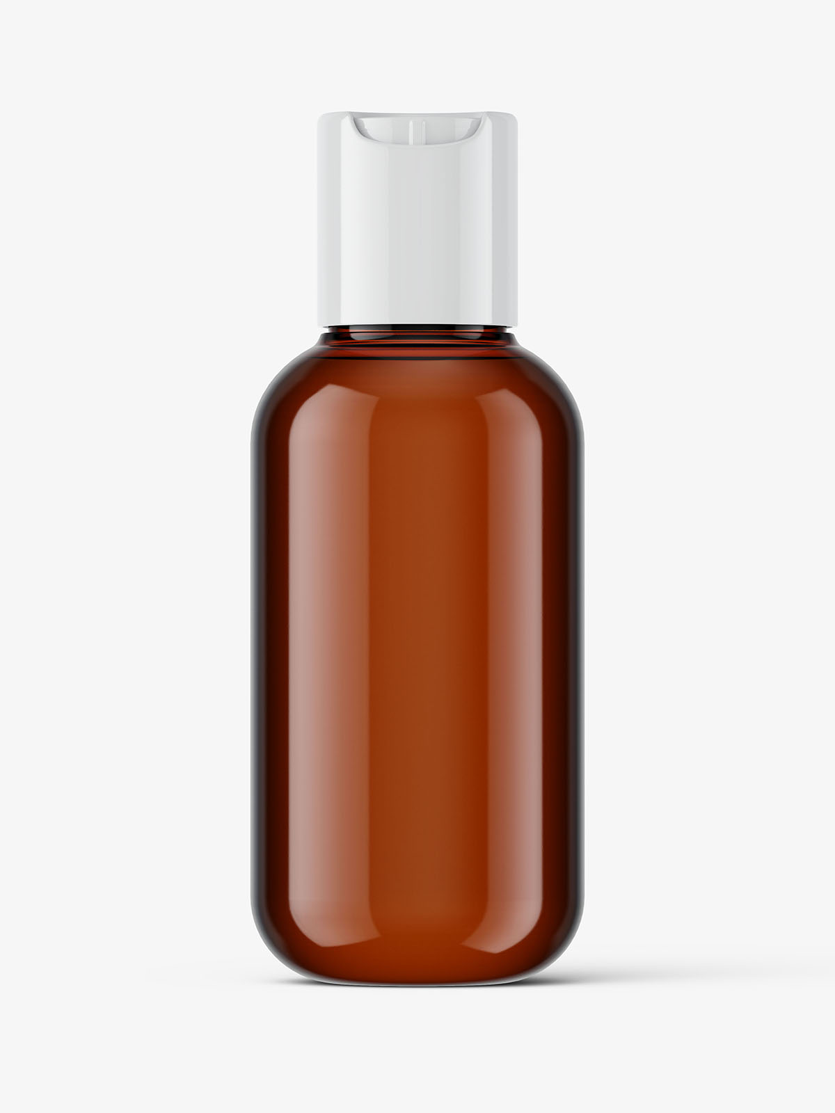 Easy to use cosmetic bottle with disc top lid mockup. Thanks to the fact that you can adjust every element of the bottle to your needs, you can create a beautiful and convincing visualization of your design in just a few moments.