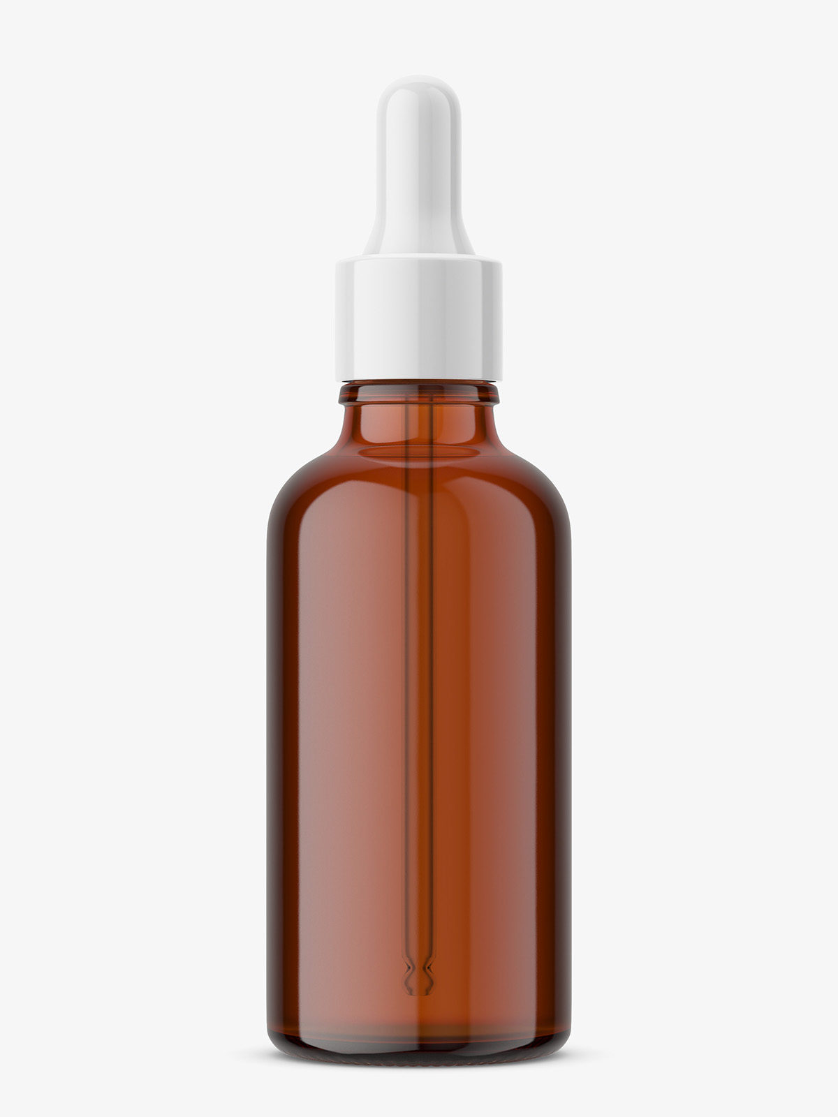 Pharmaceutical glass (phial) bottle used as packaging for medical or cosmetic products. Mockup prepared with an option for an easy change of the cap color.