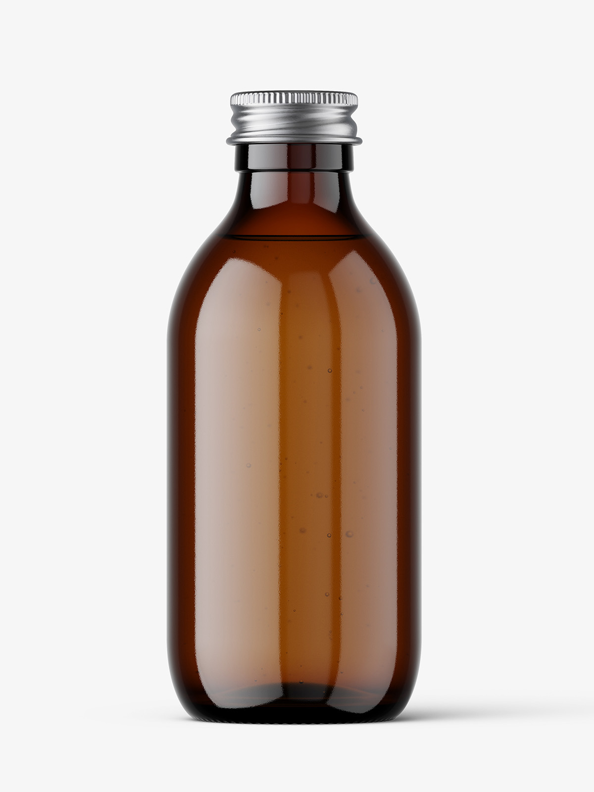 Universal bottle with silver lid mockup. Mockup is prepared in high resolution PSD file.