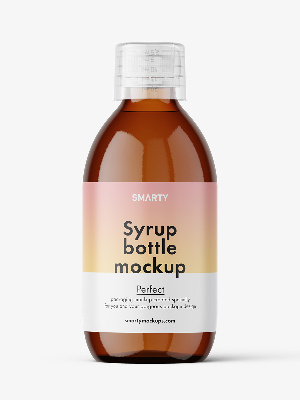 Universal syrup bottle mockup. Mockup is prepared in high resolution PSD file.