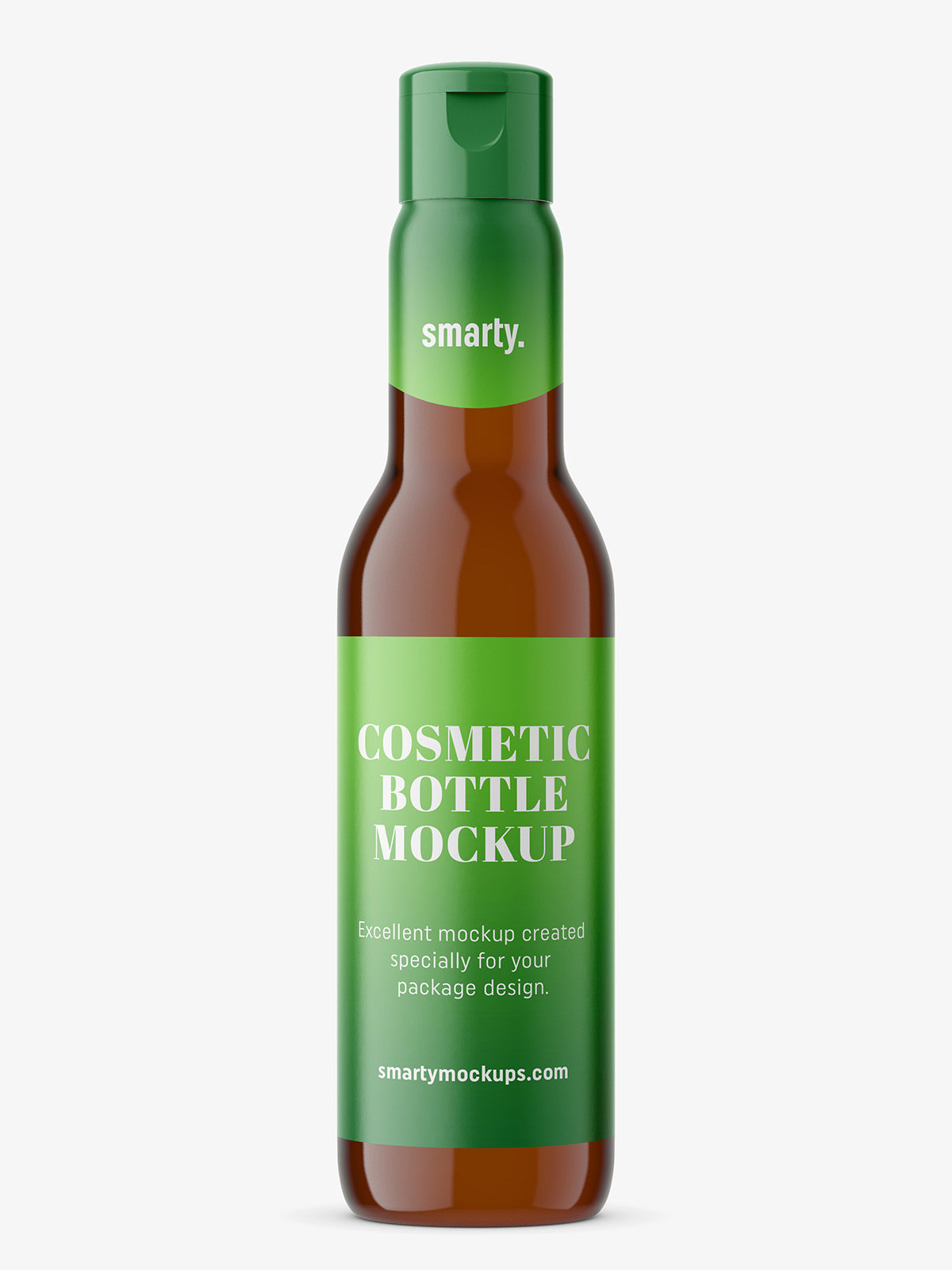 Brown / amber bottle most often used as package for herbal or pharmacy cosmetics such as shampoos, conditioners or others. Prepared in high resolution.