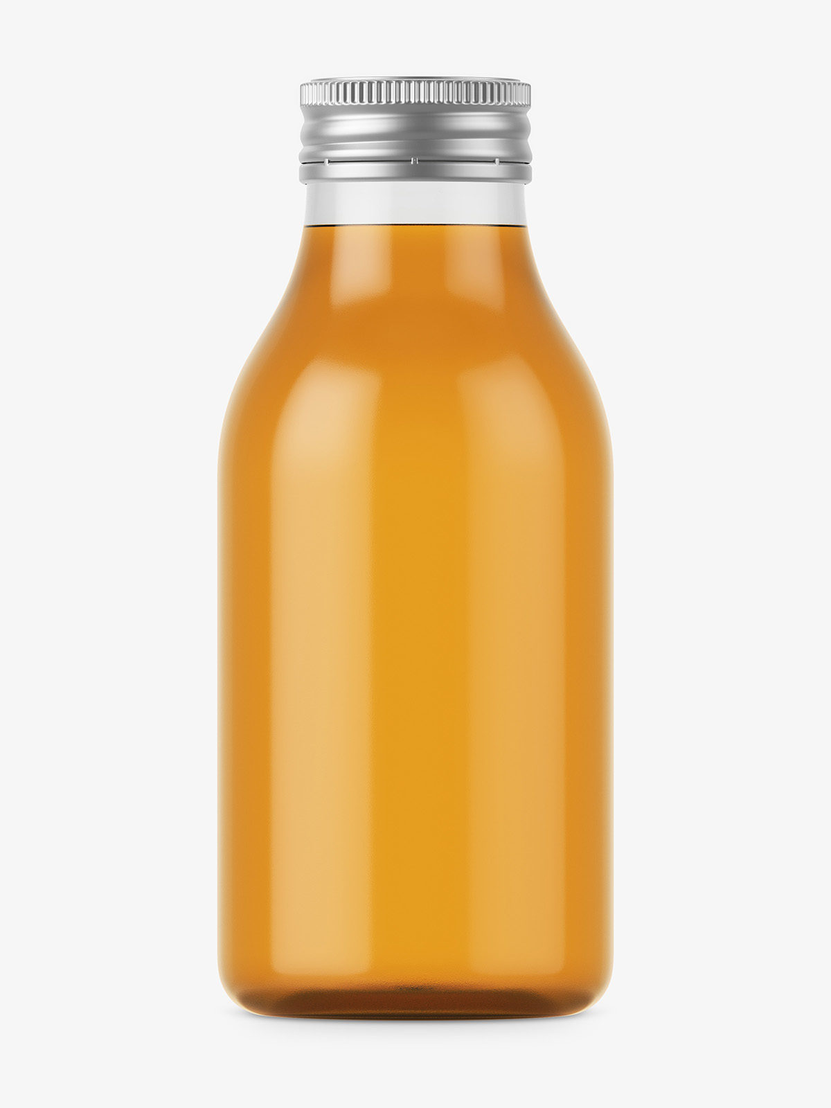 Glass bottle used as a package for juices and other colorful drinks. Mockup prepared with an option for an easy change of the cap and juice color.