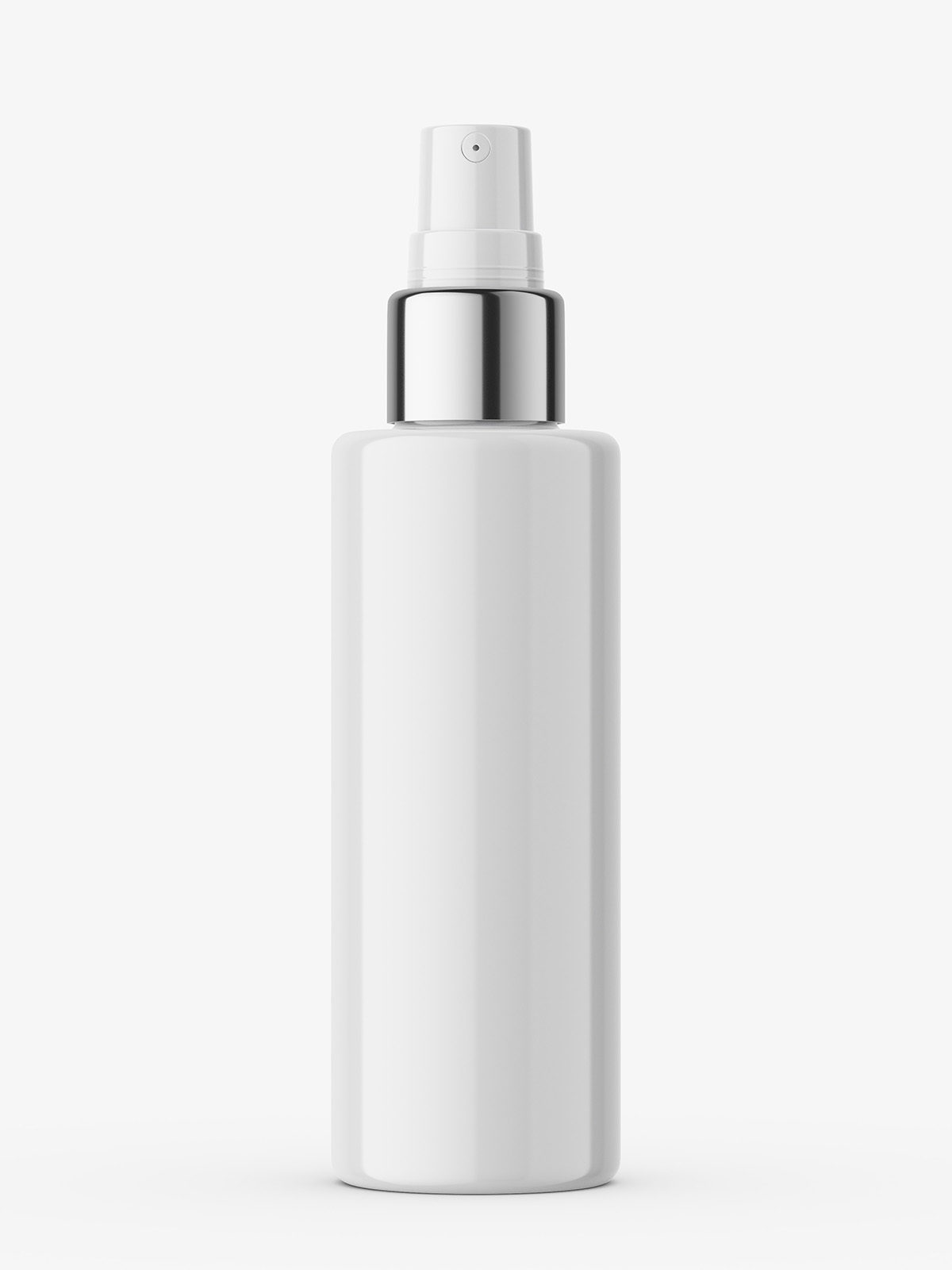 Universal cosmetic bottle with atomizer and silver top. Most commonly used in beauty industry as a package for mists, fragrances, conditioners and other beauty products.