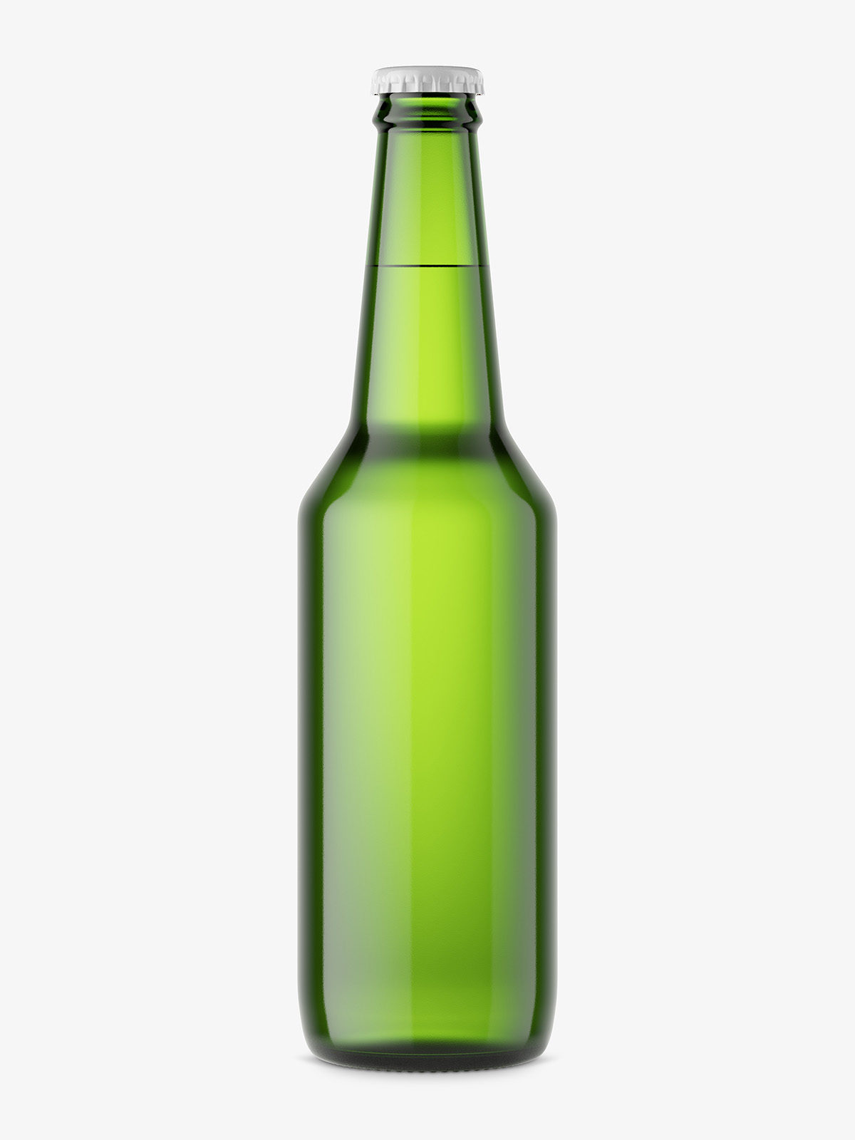 Green beer bottle mockup prepared to edit paper and metallic label. Every element has it’s own light layer that can be customized.