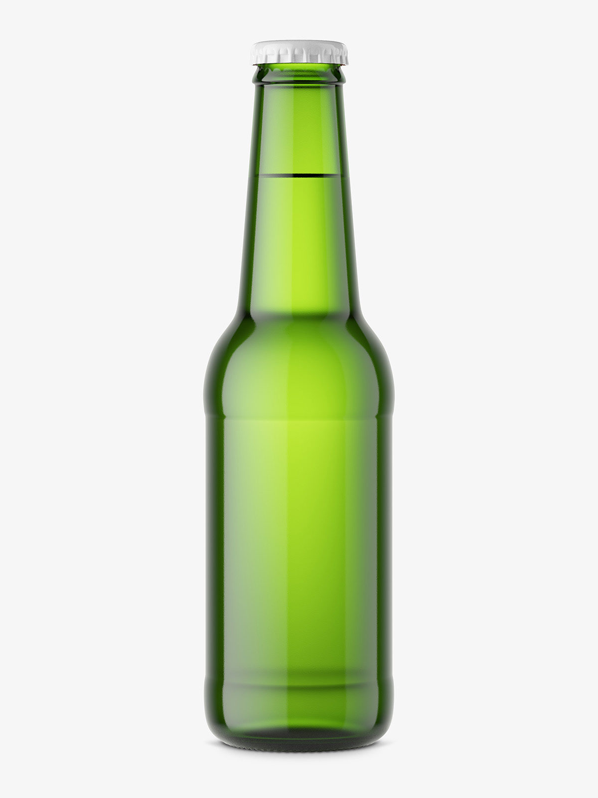 Green beer bottle mockup prepared to edit paper and metallic label. Every element has it’s own light layer that can be customized.