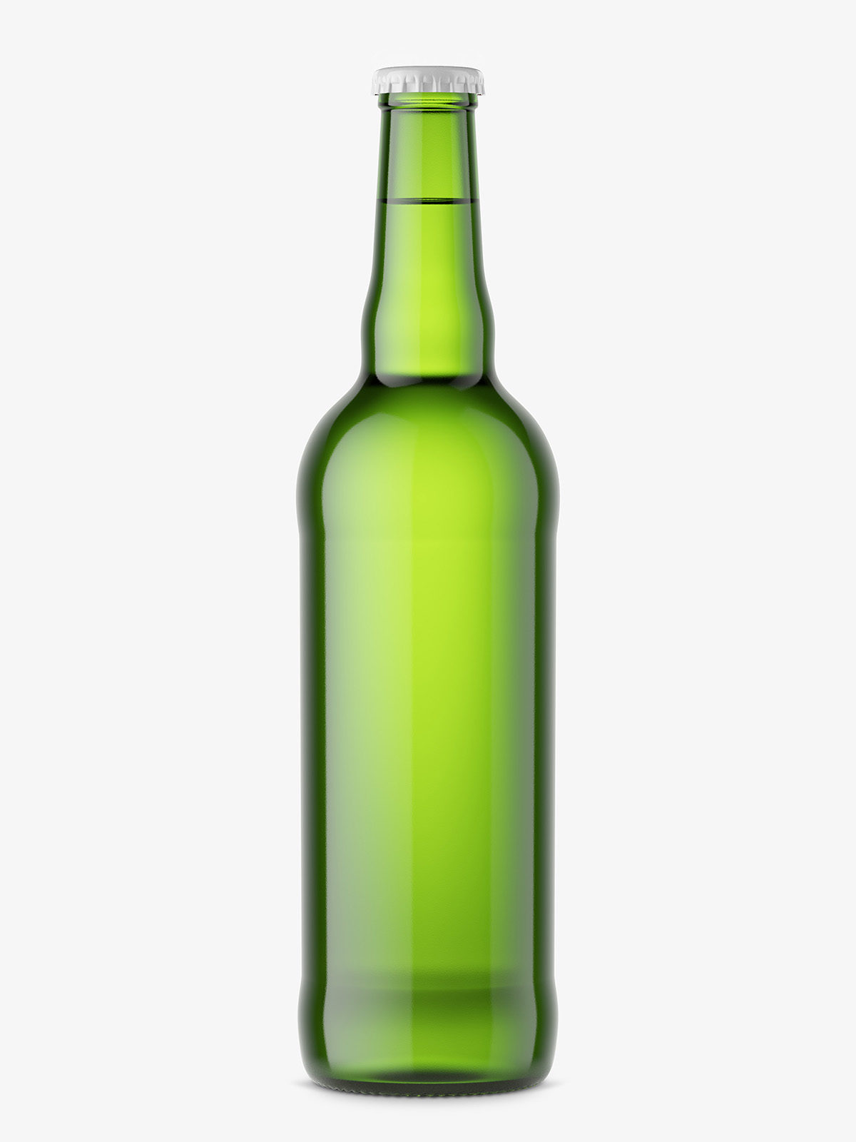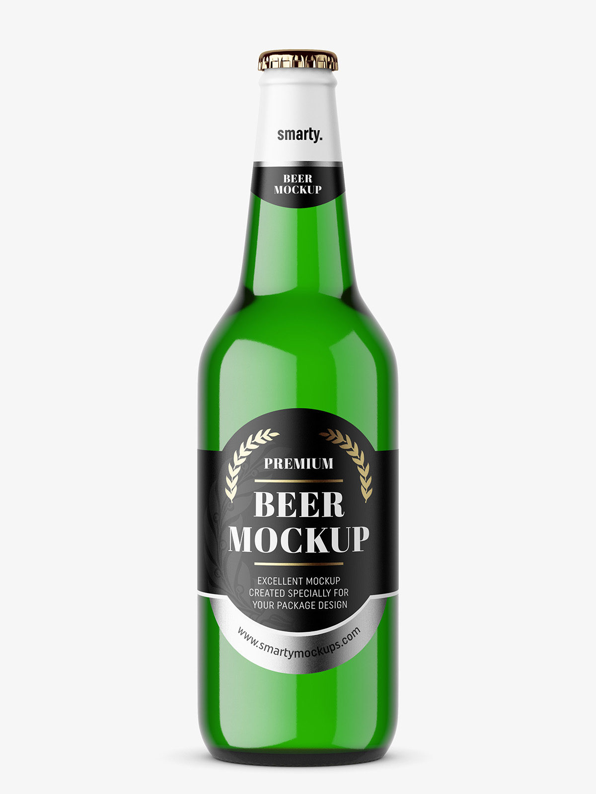 Green beer bottle mockup prepared to edit paper and metallic label. Every element has it’s own light layer that can be customized.
