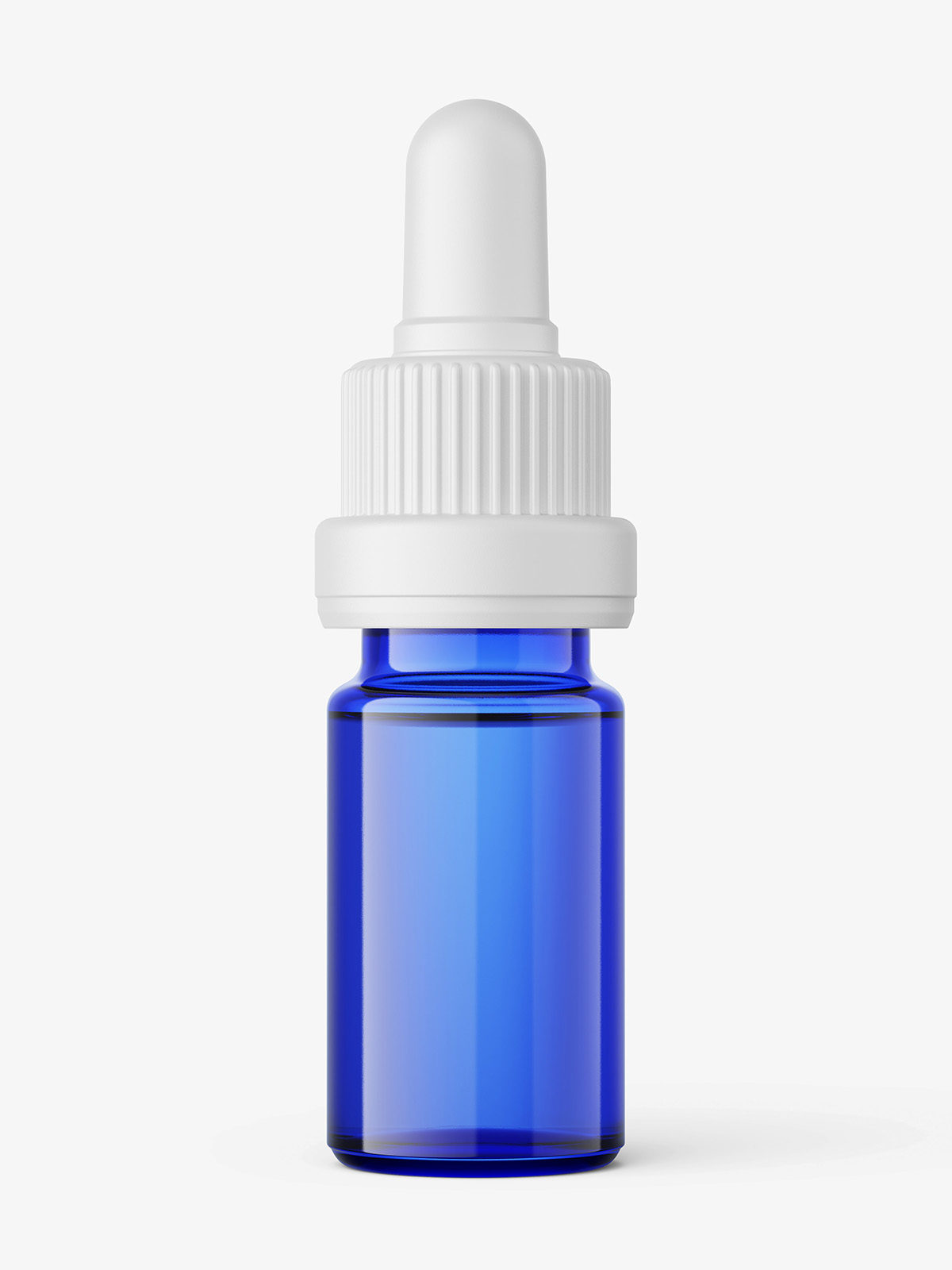 Blue dropper bottle mockup prepared in high resolution with ability to paste your project. Shadows and highlights are placed on separated layer. Mockup is easy to use and edit.