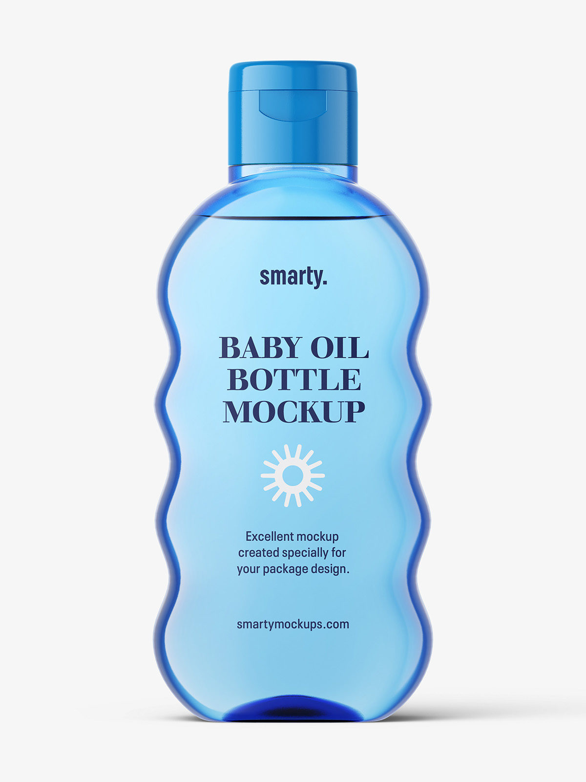 Blue essential oil bottle mockup prepared in high resolution with ability to paste your project. Shadows and highlights are placed on separated layer. Mockup is easy to use and edit.