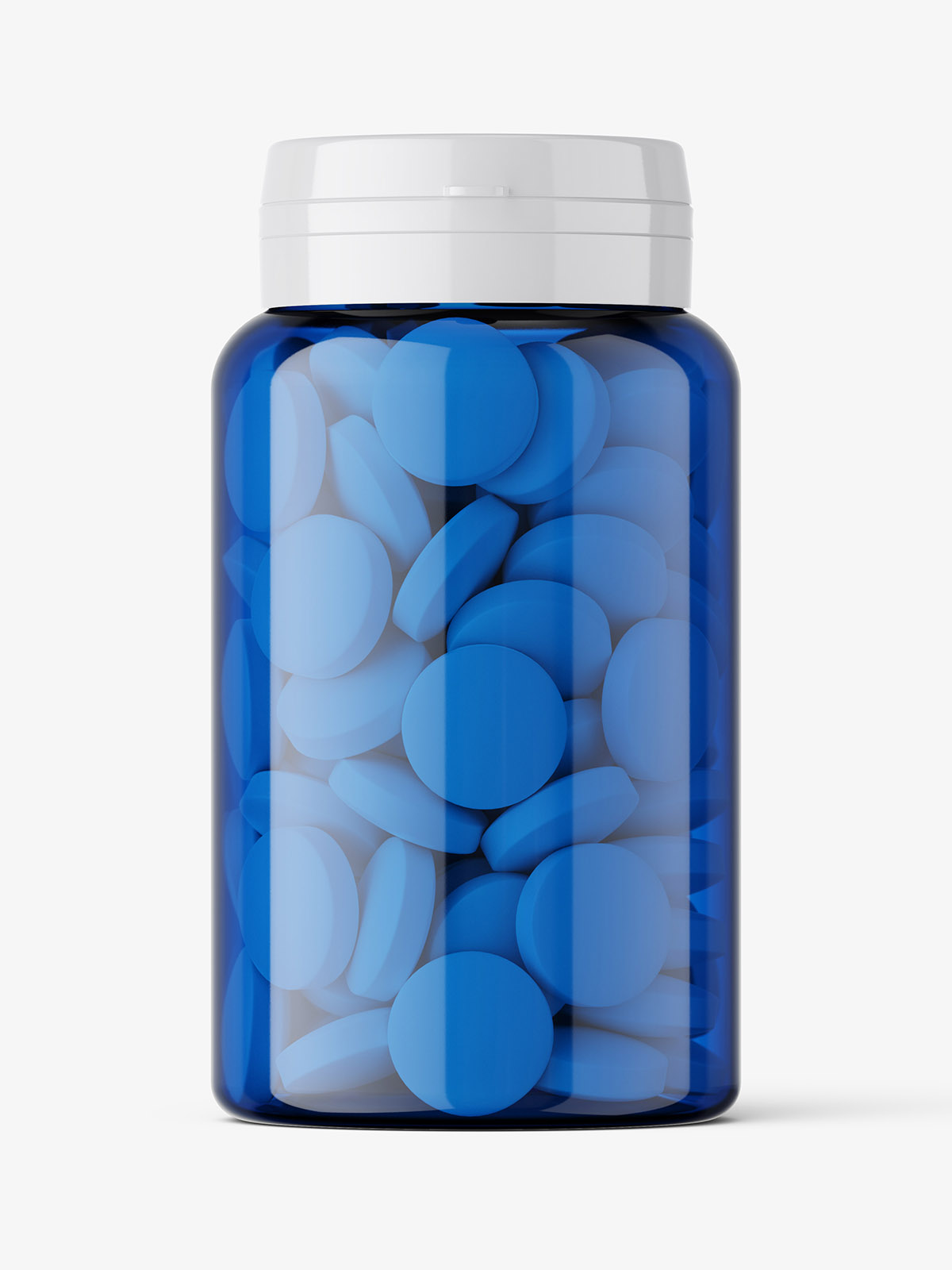 Mockup of a jar with capsules or tablets. The mockup is prepared as a PSD file that can be quickly and easily adapted to your needs. You can paste a label of any shape and size.