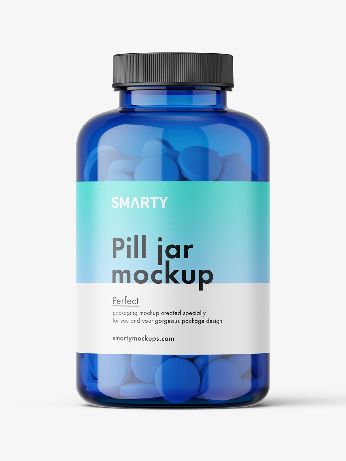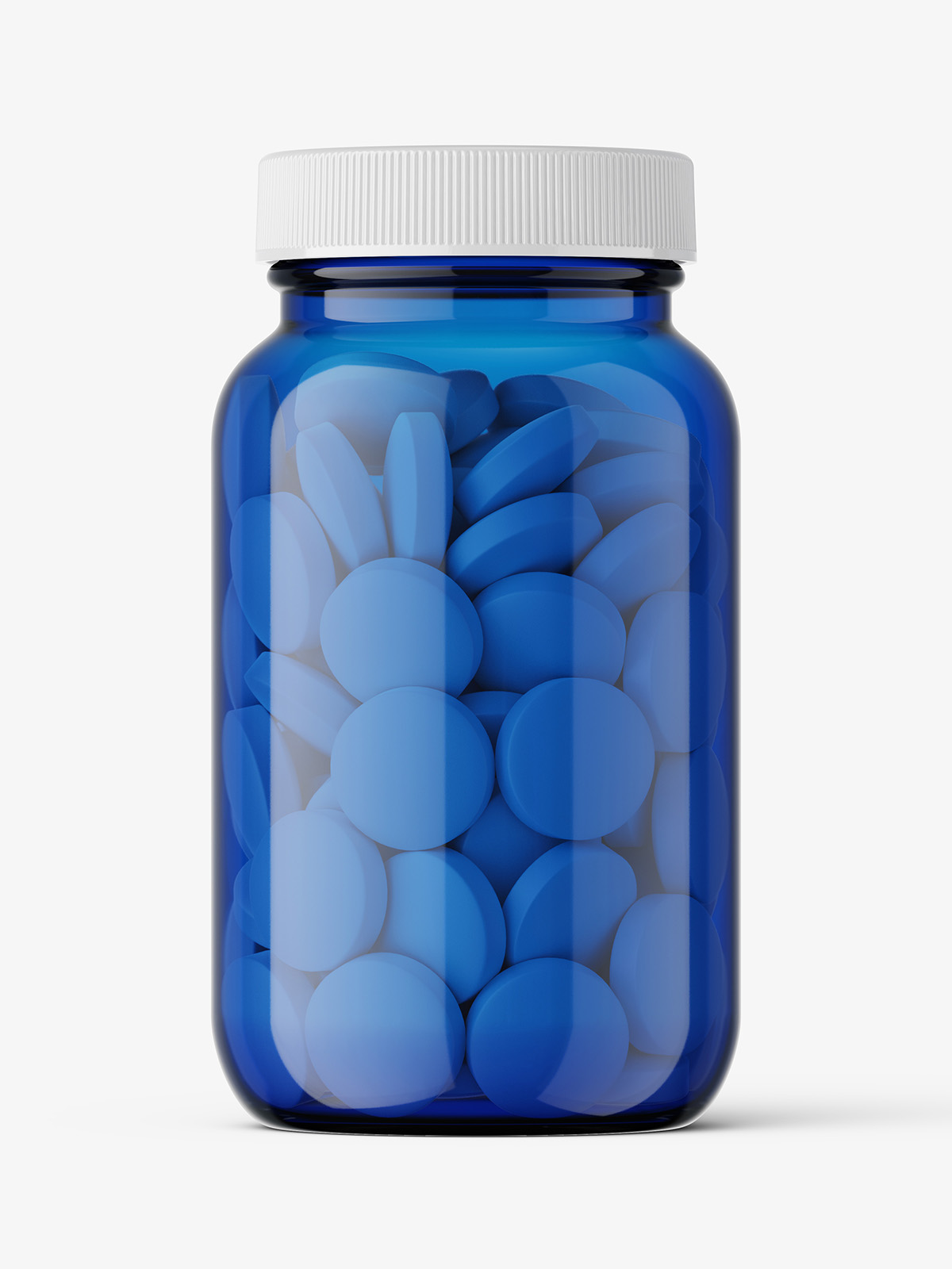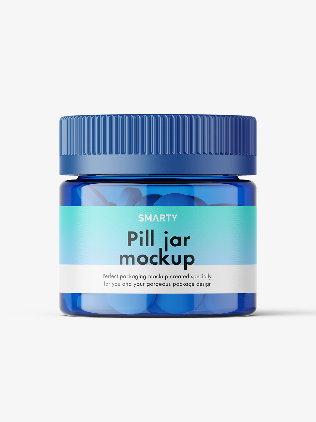 Blue jar with round tablets mockup