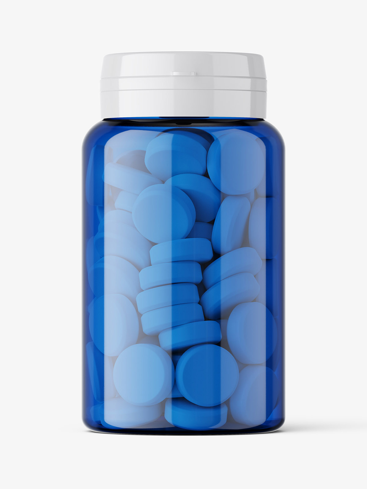 Mockup of a jar with capsules or tablets. The mockup is prepared as a PSD file that can be quickly and easily adapted to your needs. You can paste a label of any shape and size.