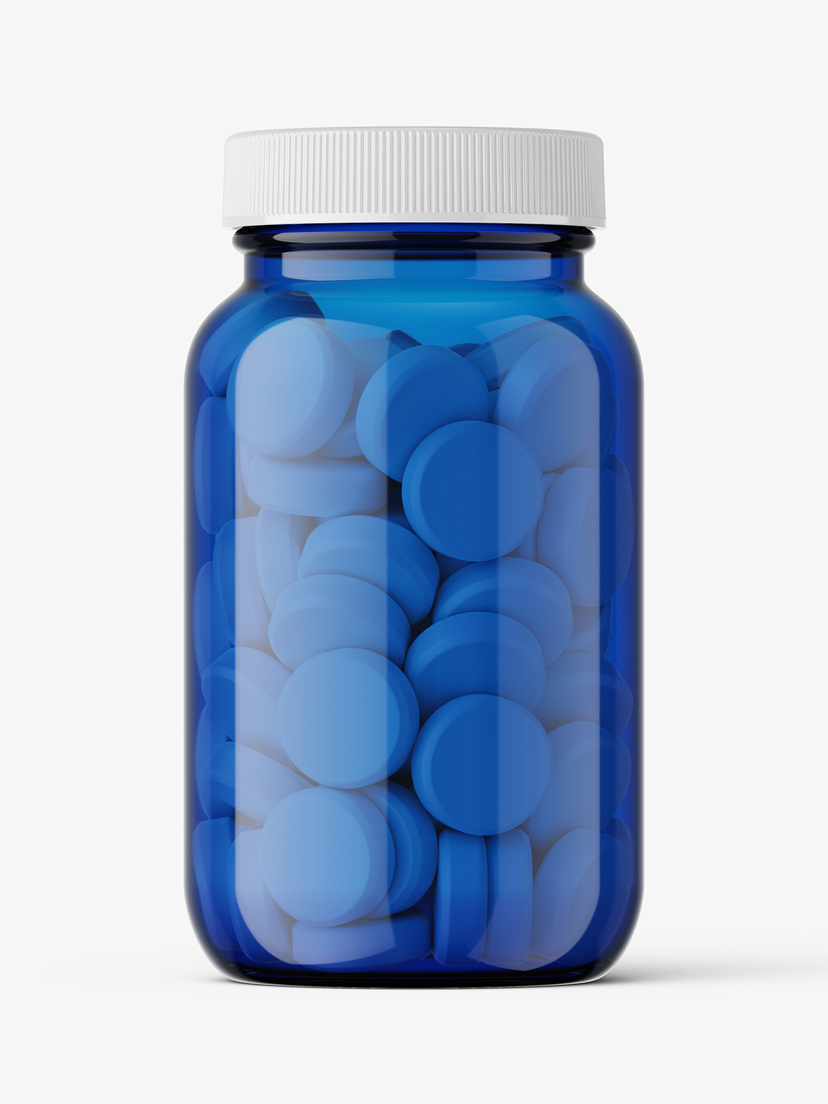 Mockup of a jar with capsules or tablets. The mockup is prepared as a PSD file that can be quickly and easily adapted to your needs. You can paste a label of any shape and size.
