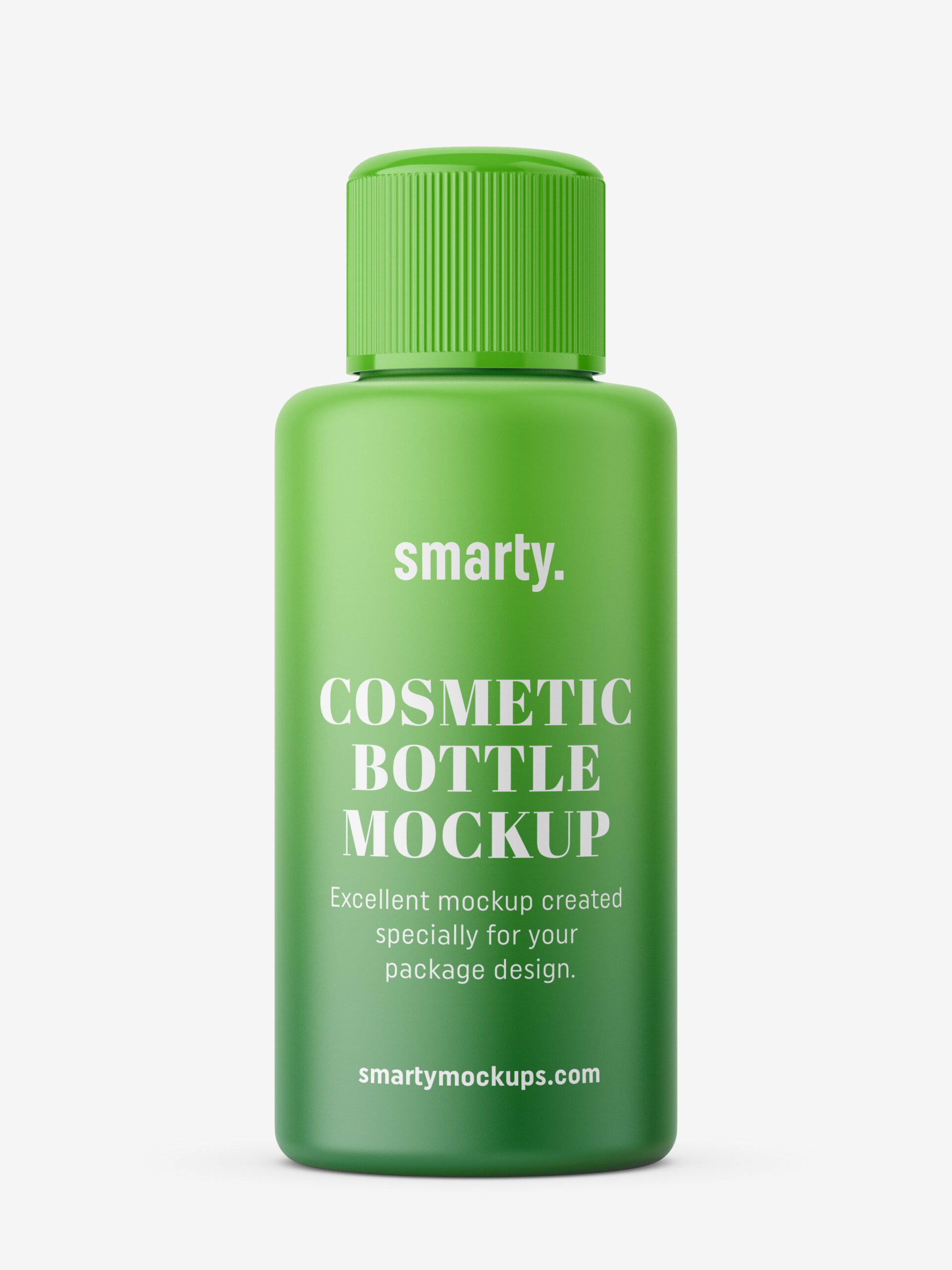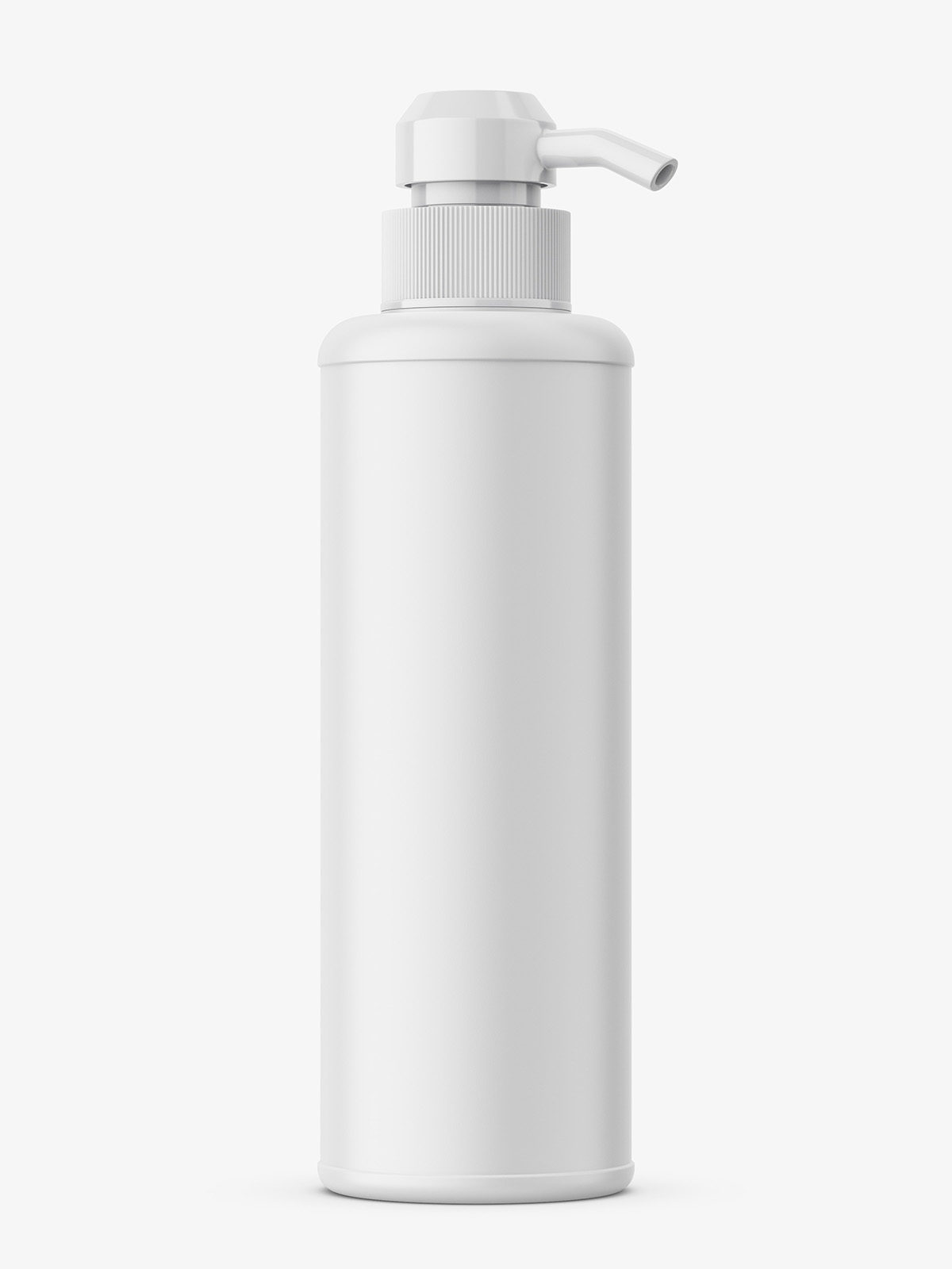 Simple bottle with unusual pump cap. Such packagings are often used in cosmetics or hair styling industry. Created with great attention to details.