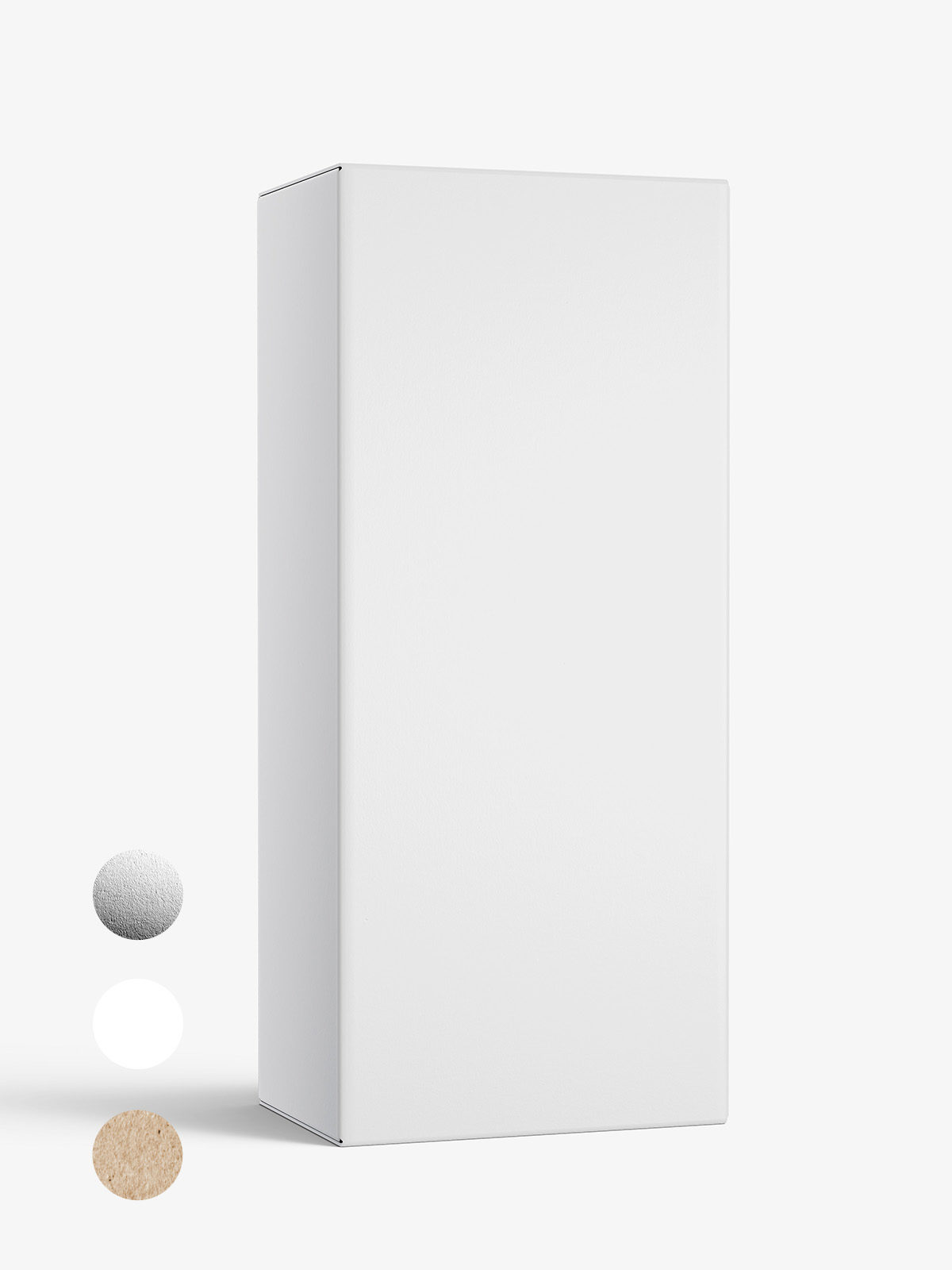 Box mockup / 50x115x35 mm / white – metallic – kraft