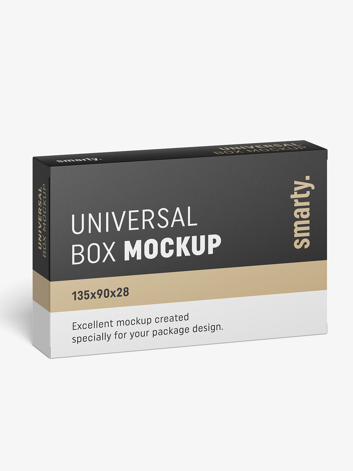Universal box that can be used for various products. The mockup may be helpful for projects involving cosmetics, medication, foods and others.