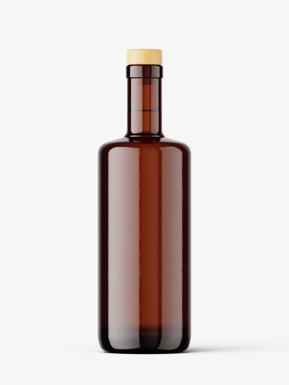 Amber vodka bottle with transparent liquid inside. Such mockup may be use as vodka packaging packshot or other alcohol drinks as well. NOTE. Liquid and bottle color can’t be changed.