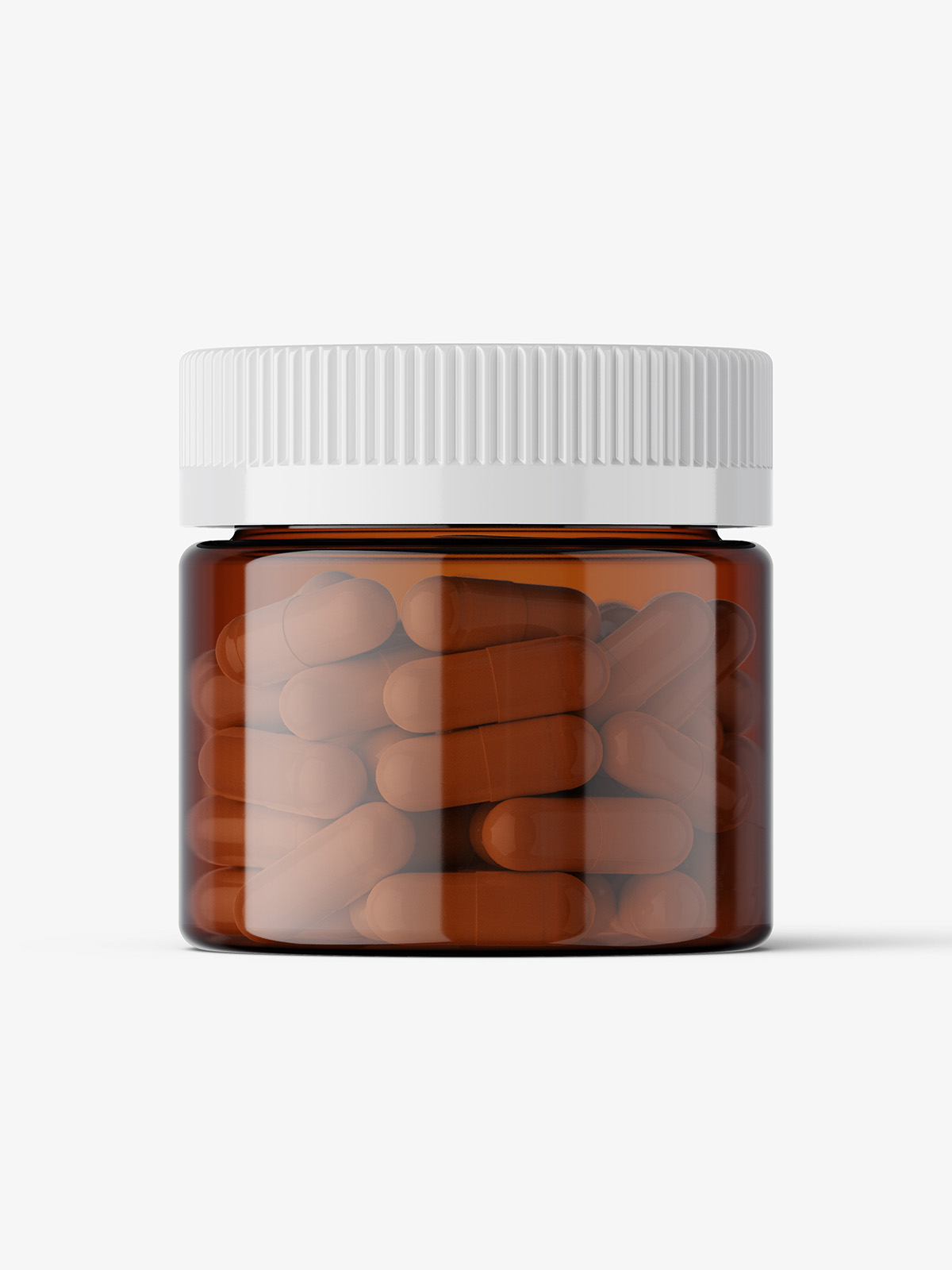 Jar with medicine mockup. Easy to use and customize. Mockup is preapred in high resolution. You can adjust label size and shape.