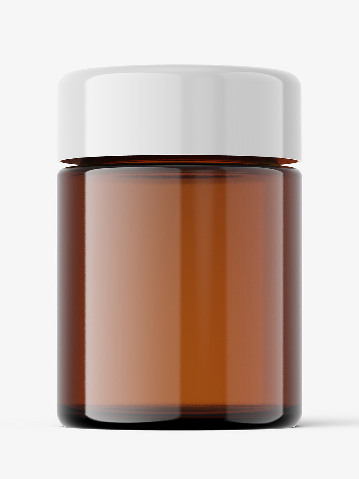 Regular amber jar mockup prepared in high resolution with ability to paste your own project as well as change cap color.