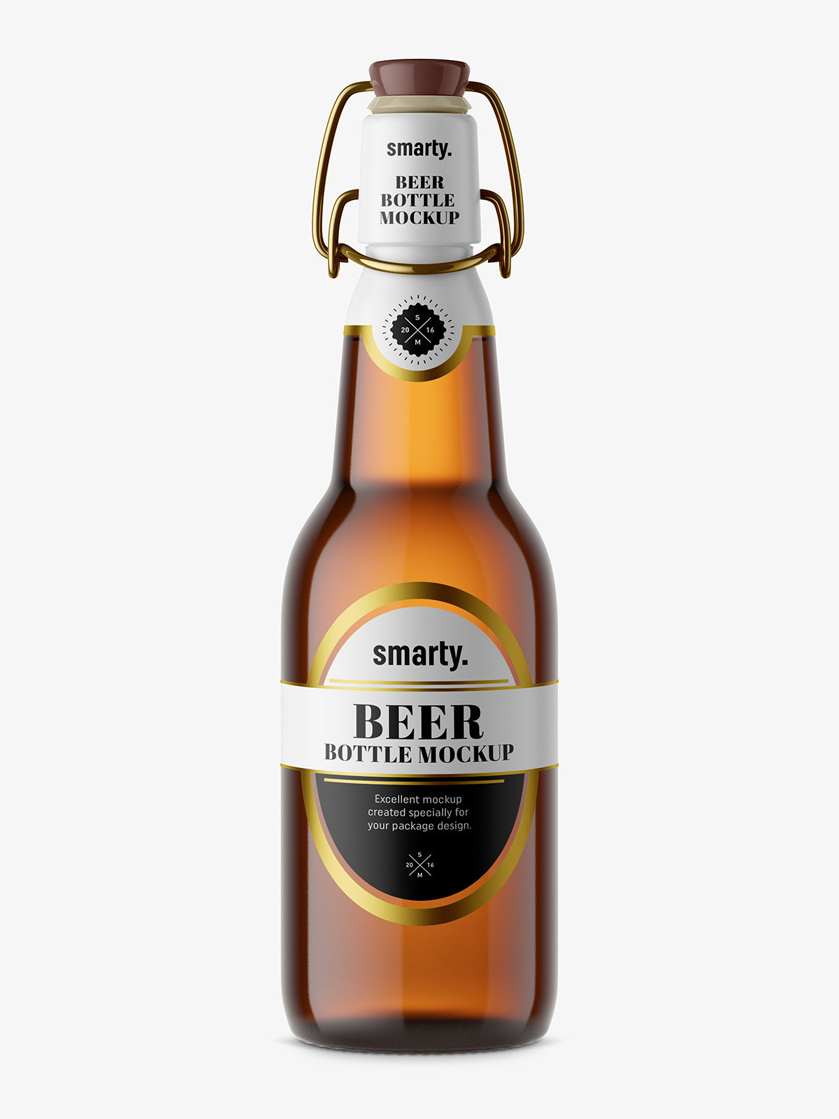 Clear beer bottle with swing top cap mockup