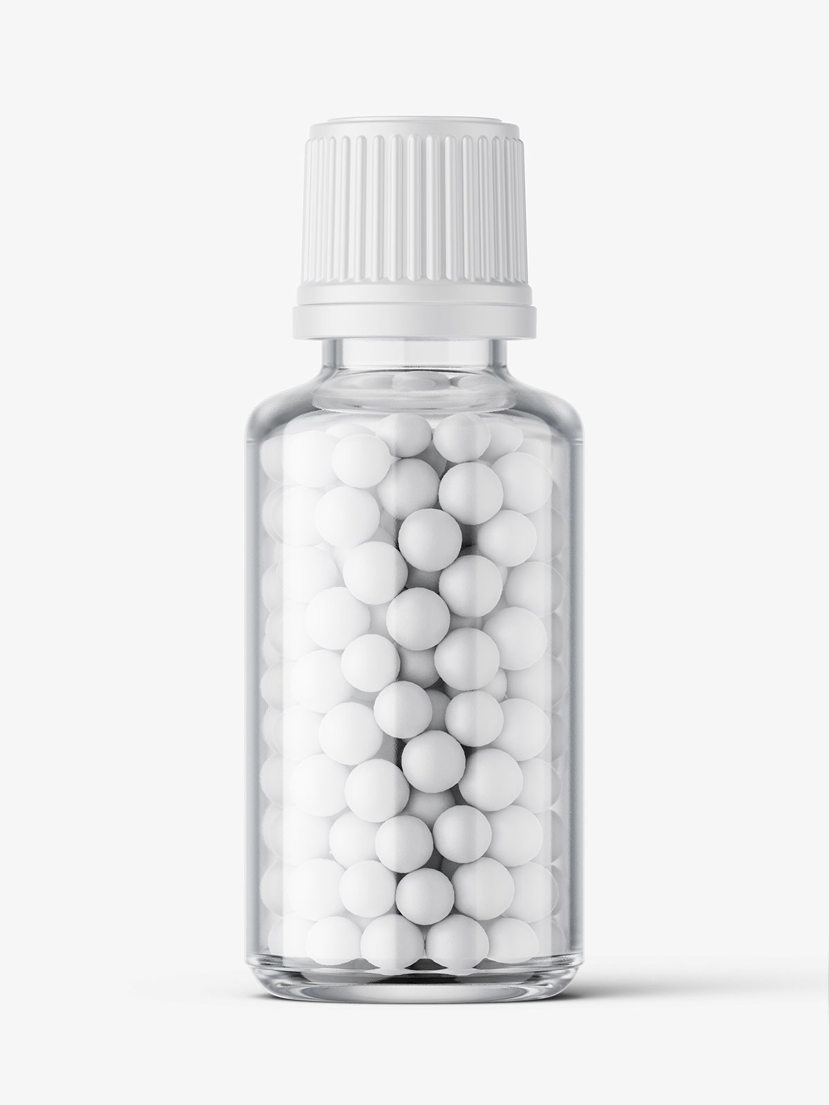 Bottle with medicine mockup. It is easy to use and customize. Mockup is preapred in high resolution. You can adjust label size and shape.