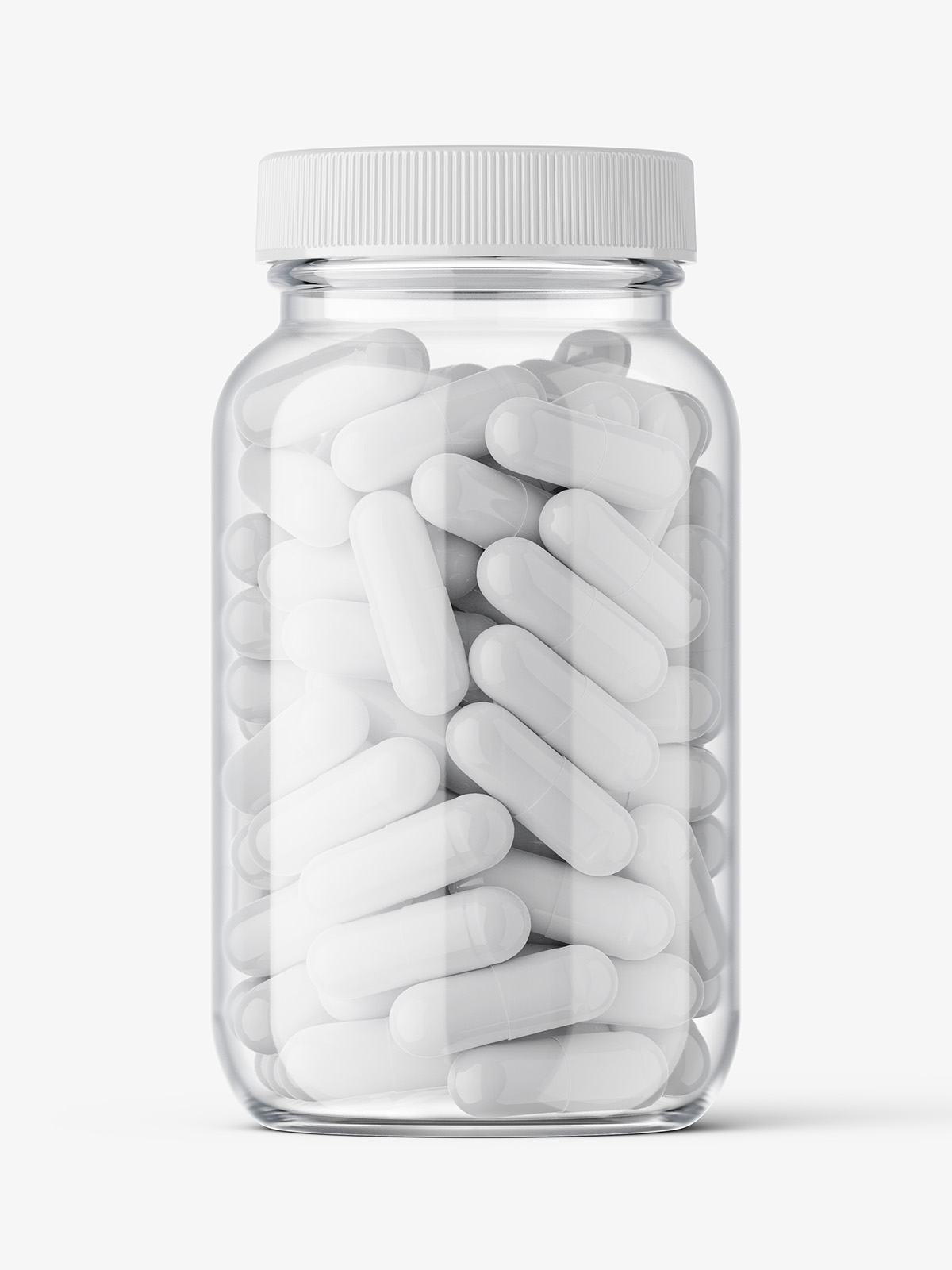 Mockup of a jar with capsules or tablets. The mockup is prepared as a PSD file that can be quickly and easily adapted to your needs. You can paste a label of any shape and size.
