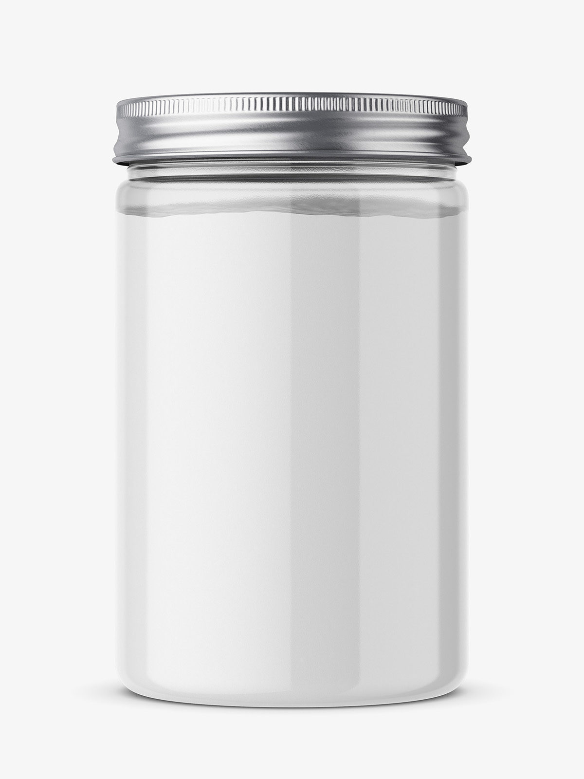 Clear jar with powder mockup. You can change powder color, as well as metallic cap color. Replacing label project is easy and can be done via Smart Object layer in PSD file.