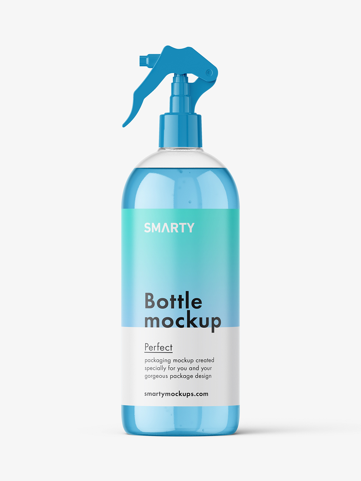 Universal bottle with trigger spray mockup. Prepared with ability to paste your own project and set cap color.