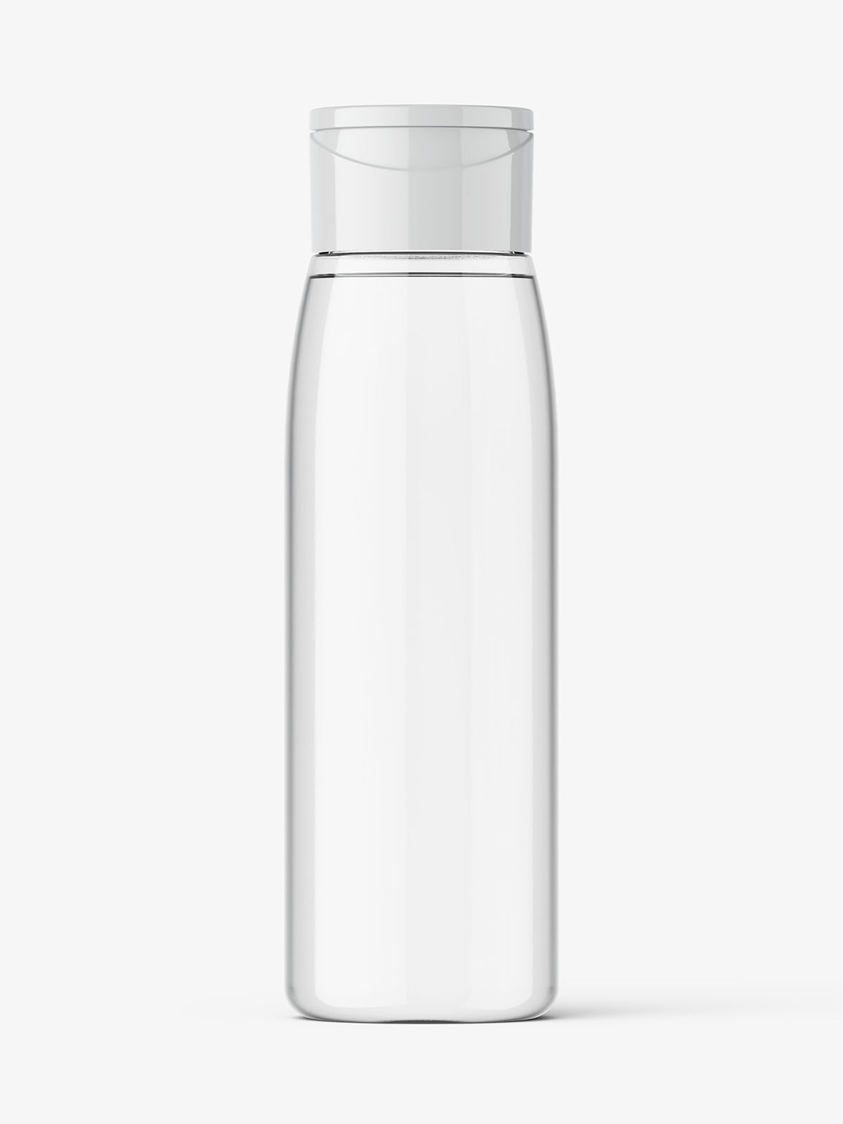 Easy to use wide cosmetic bottle with flip top lid mockup. Thanks to the fact that you can adjust every element of the bottle to your needs, you can create a beautiful and convincing visualization of your design in just a few moments.