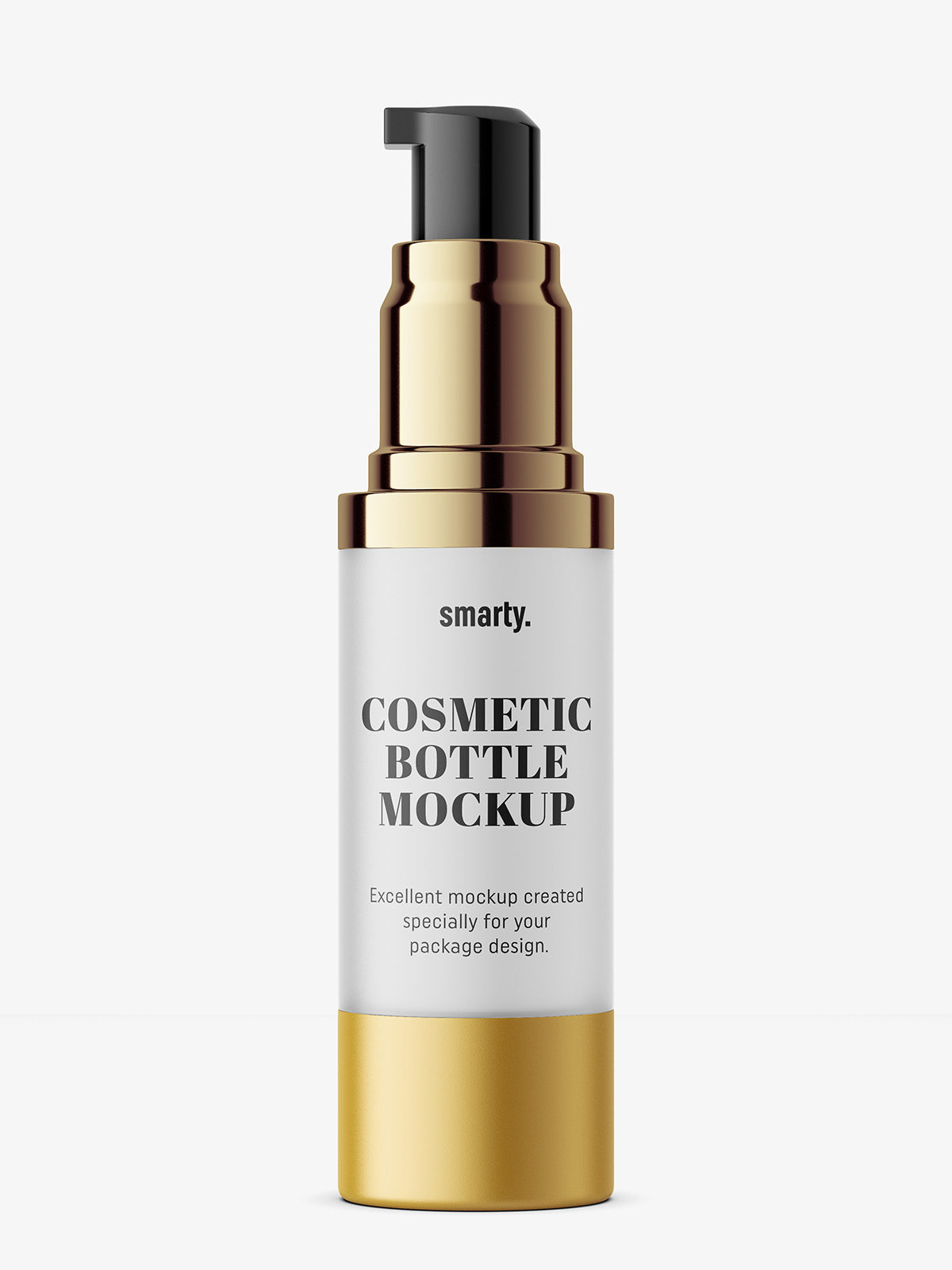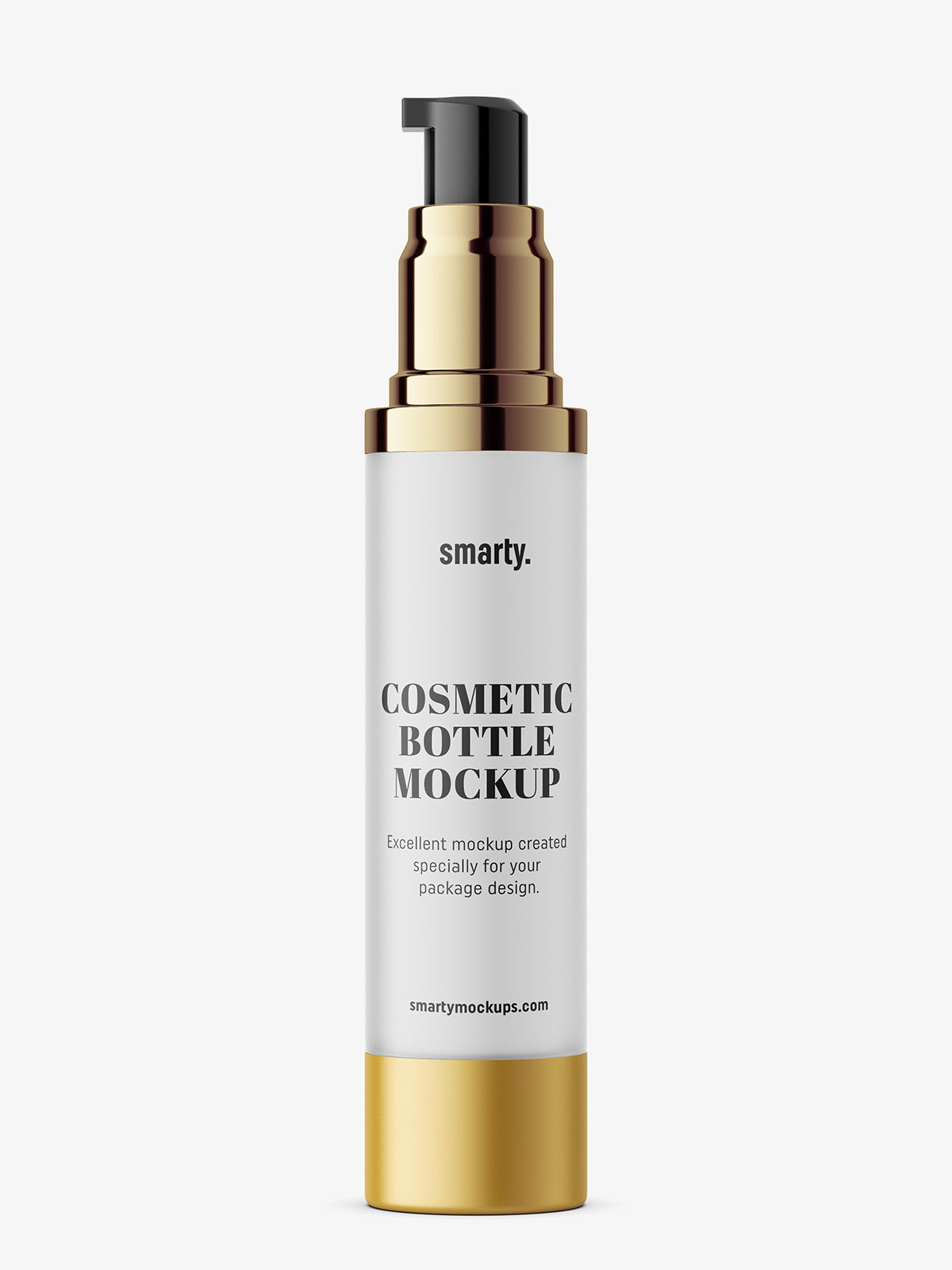 Cosmetic airless bottle mockup prepared with ability to paste project on glass. Top and bottom plastic color can be changed.