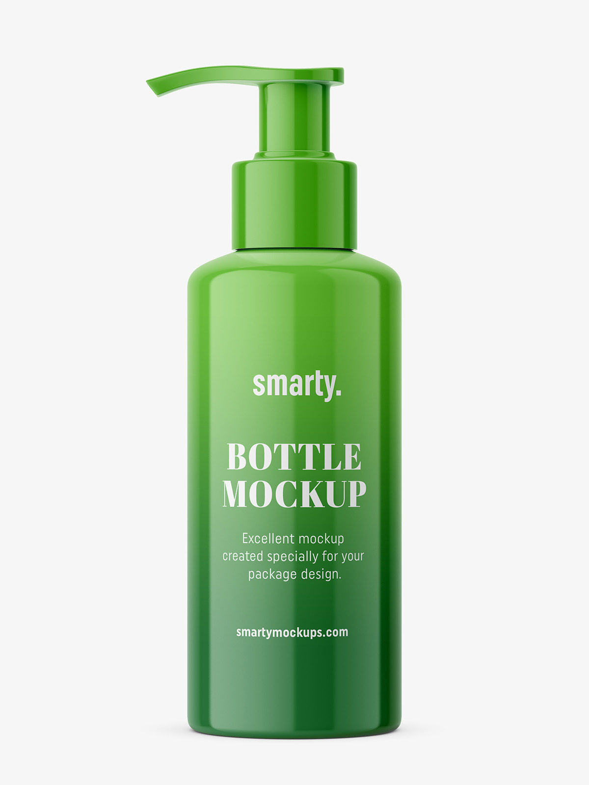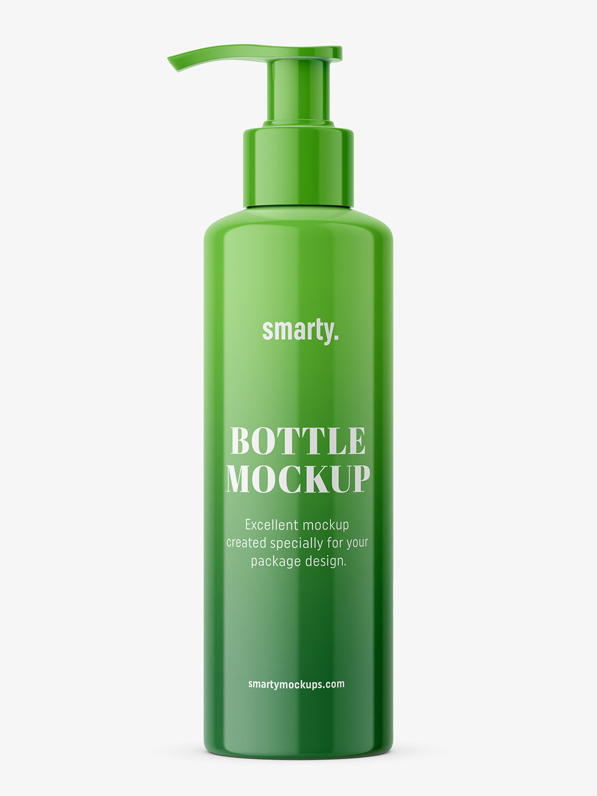 Plastic glossy bottle with airless pump – typically used as packaging for cosmetics. Such jar may be used as a cream, gel, liquid or other cosmetic container.