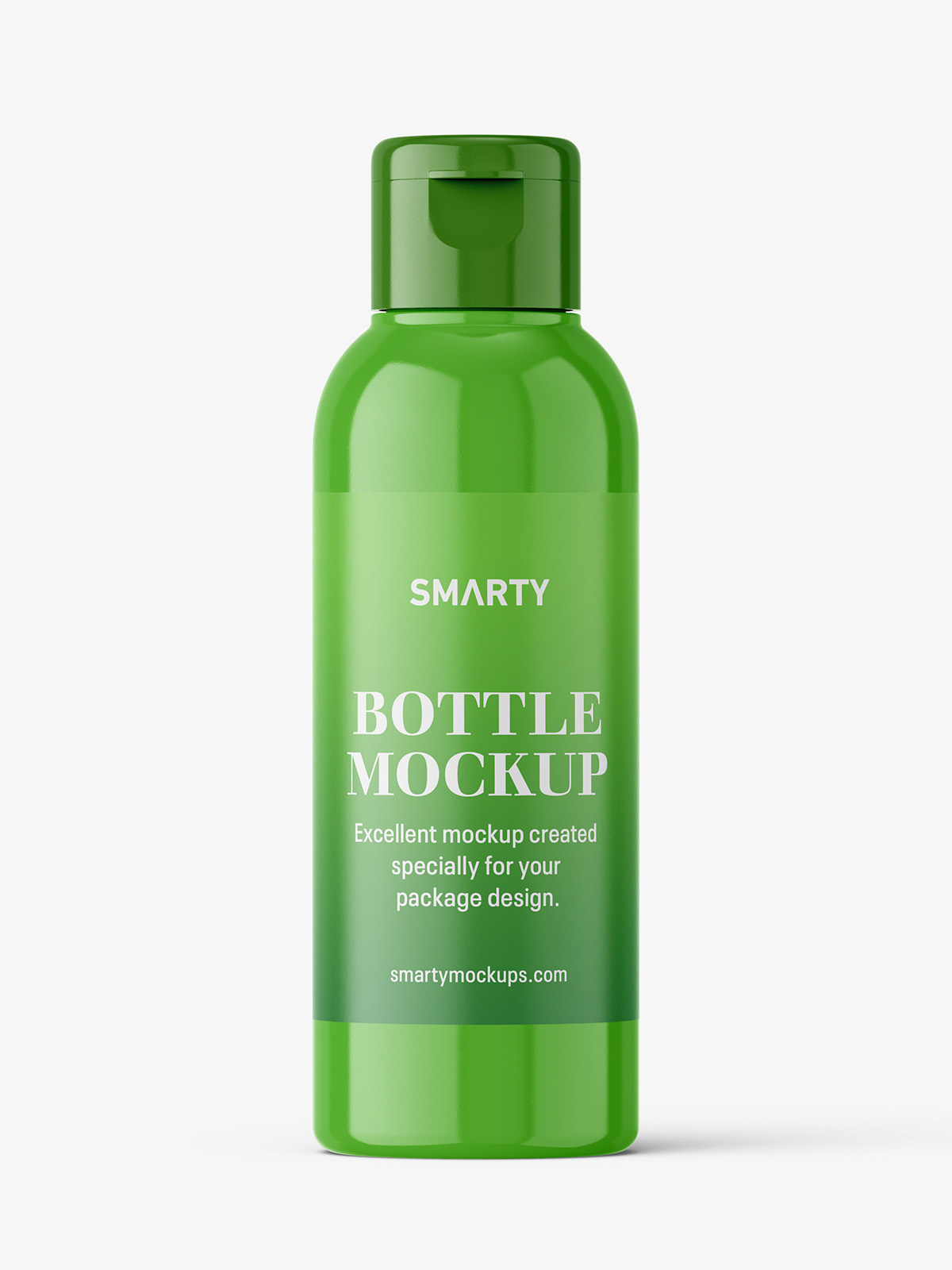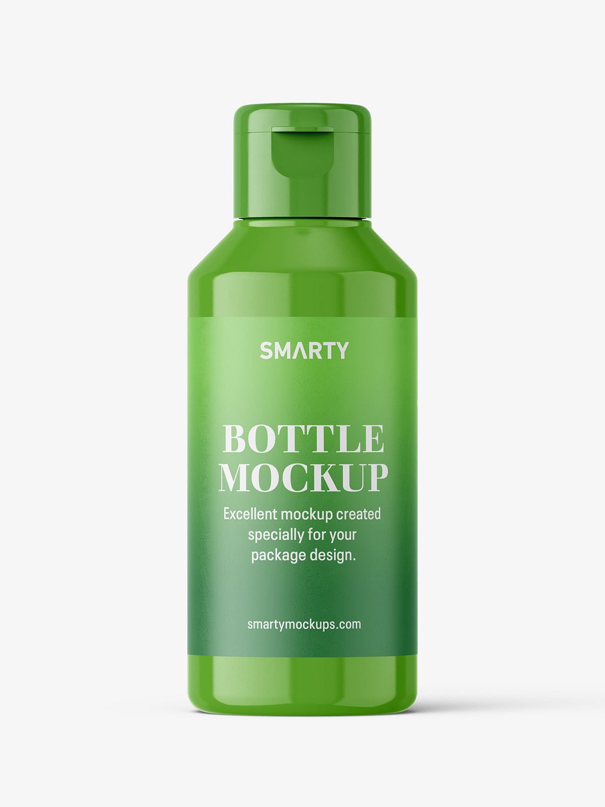Universal bottle with flip top cap mockup. Mockup is prepared in high resolution PSD file.