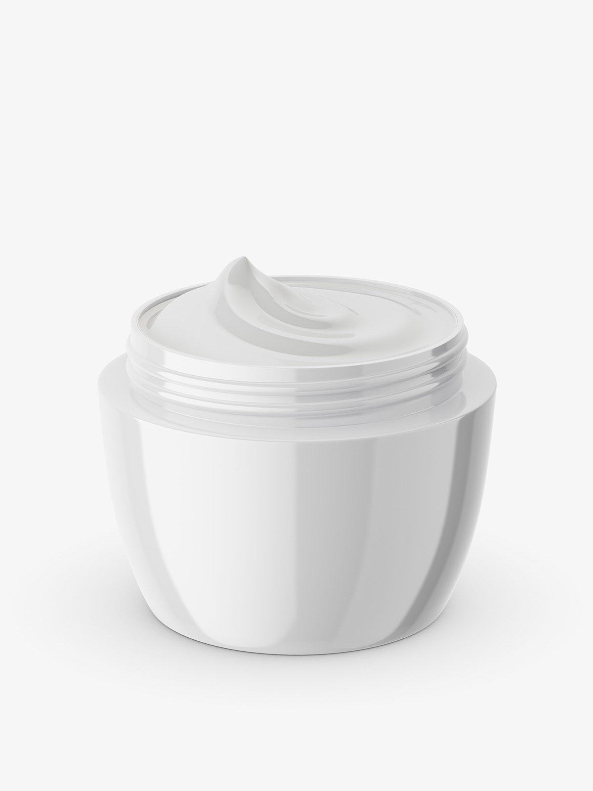 Universal cosmetic jar mockup. Used as a container for creams or gels. Mockup has been properly prepared, so it`s easy to change project and cap color.