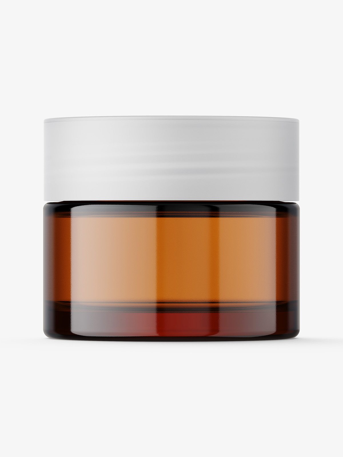 Glass cosmetic jar with custom caps mockup. PSD file is prepared in high resolution, with ability to change project on the glass jar.