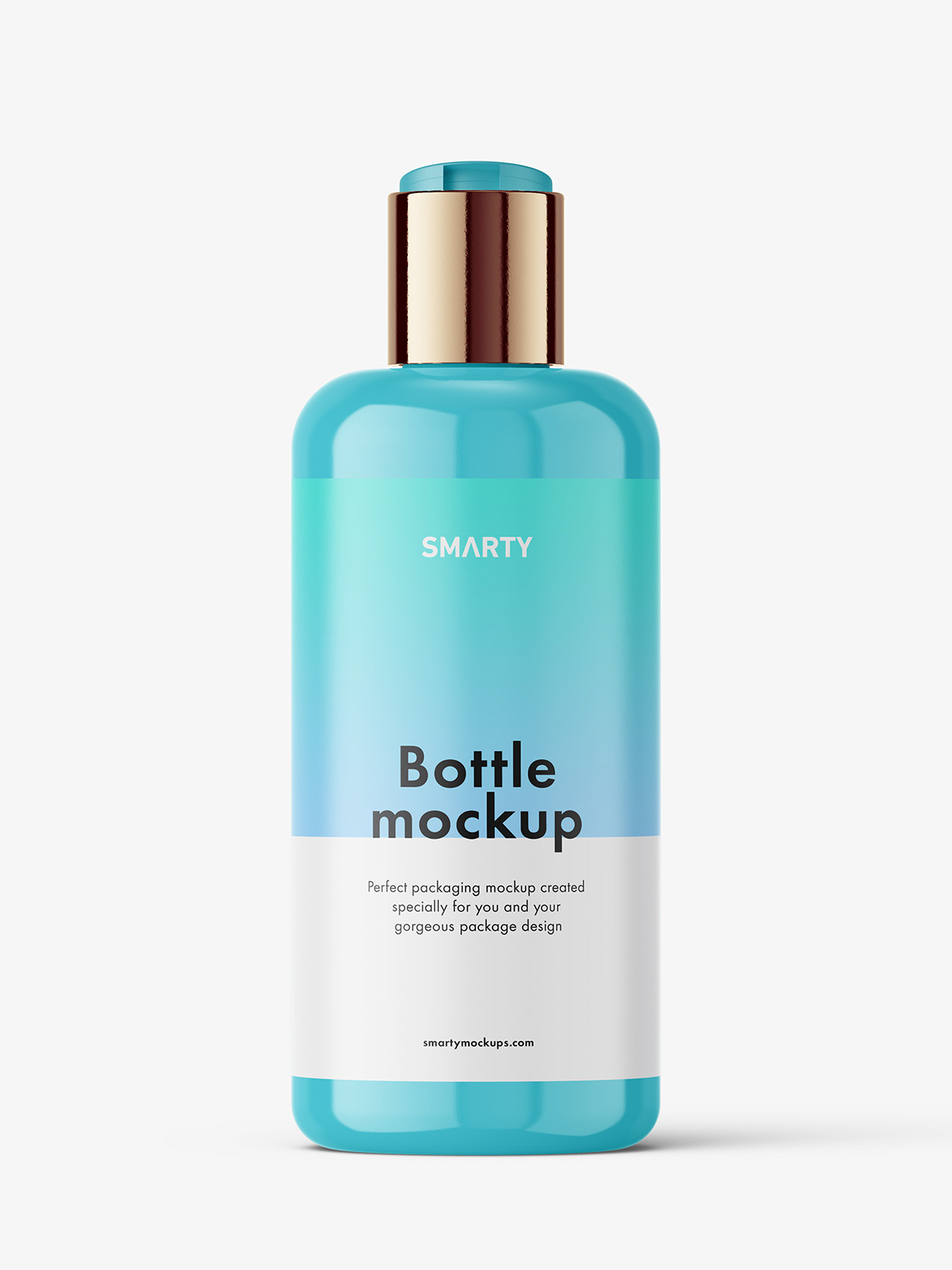 Universal bottle with disc top cap mockup. Prepared with ability to paste your own project and set cap color.