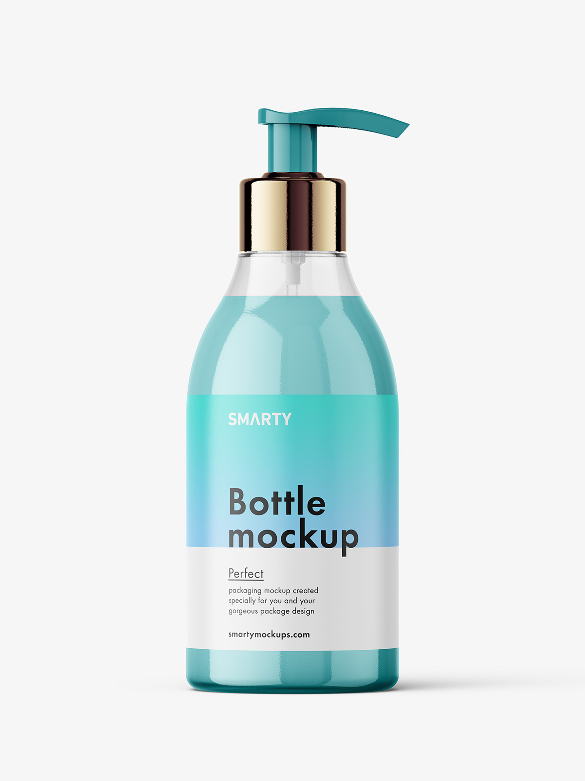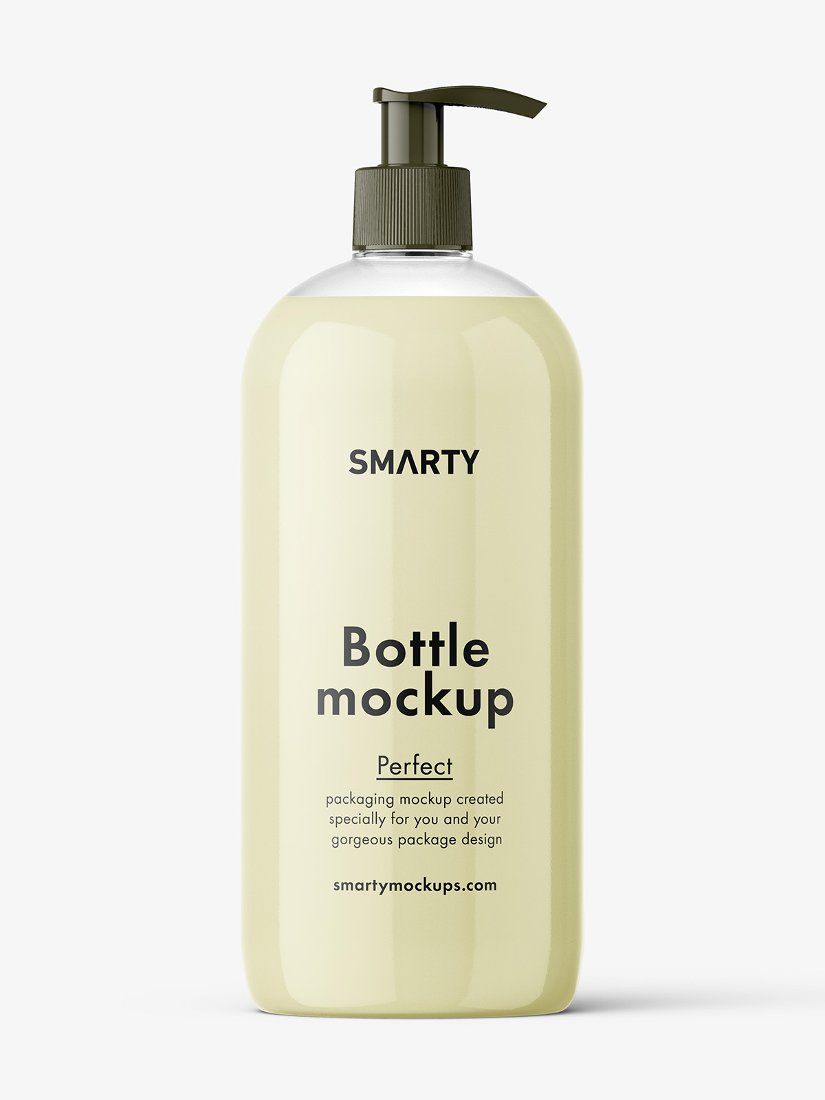 A realistic and easy-to-use pump bottle mockup. You can paste a label of any shape and size, and you can change the color of each bottle element.