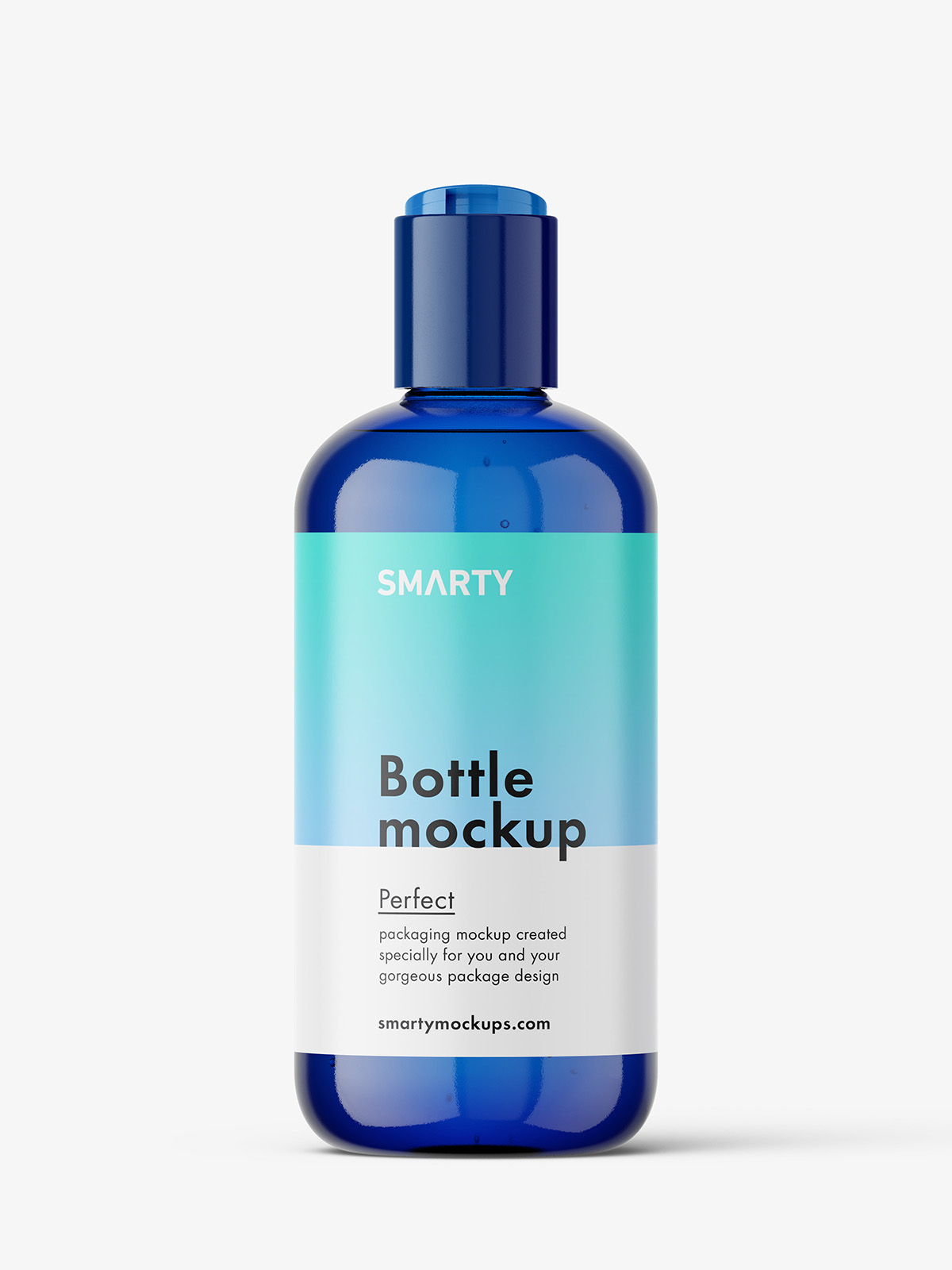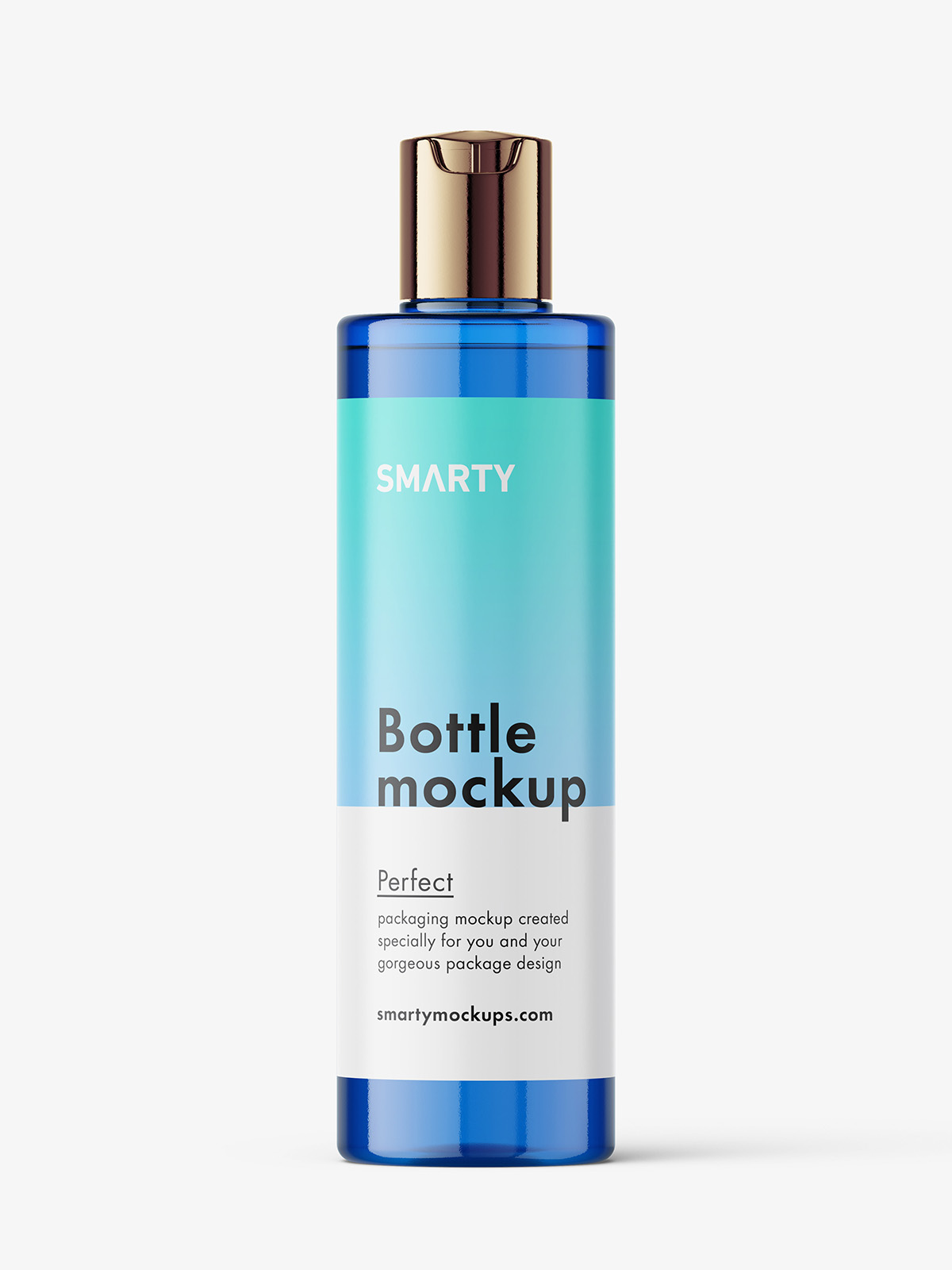 Curved bottle with disctop mockup / blue