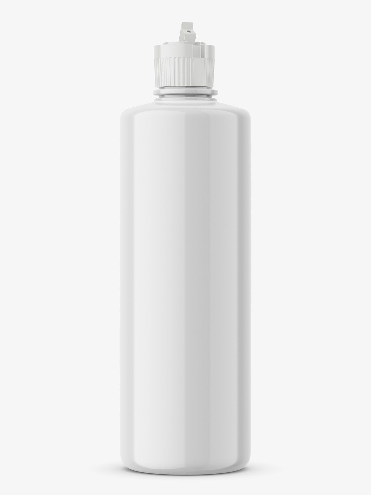 Universal cosmetic bottle, used for packaging of shampoos, conditioners, gels and other hygiene cosmetics. The mockup was prepared so as to allow for adding any color to the cap.