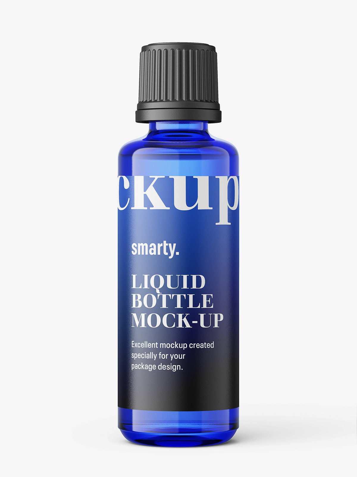 Blue gin bottle with transparent liquid inside. Such mockup may be use as vodka packaging packshot or other alcohol drinks as well.
