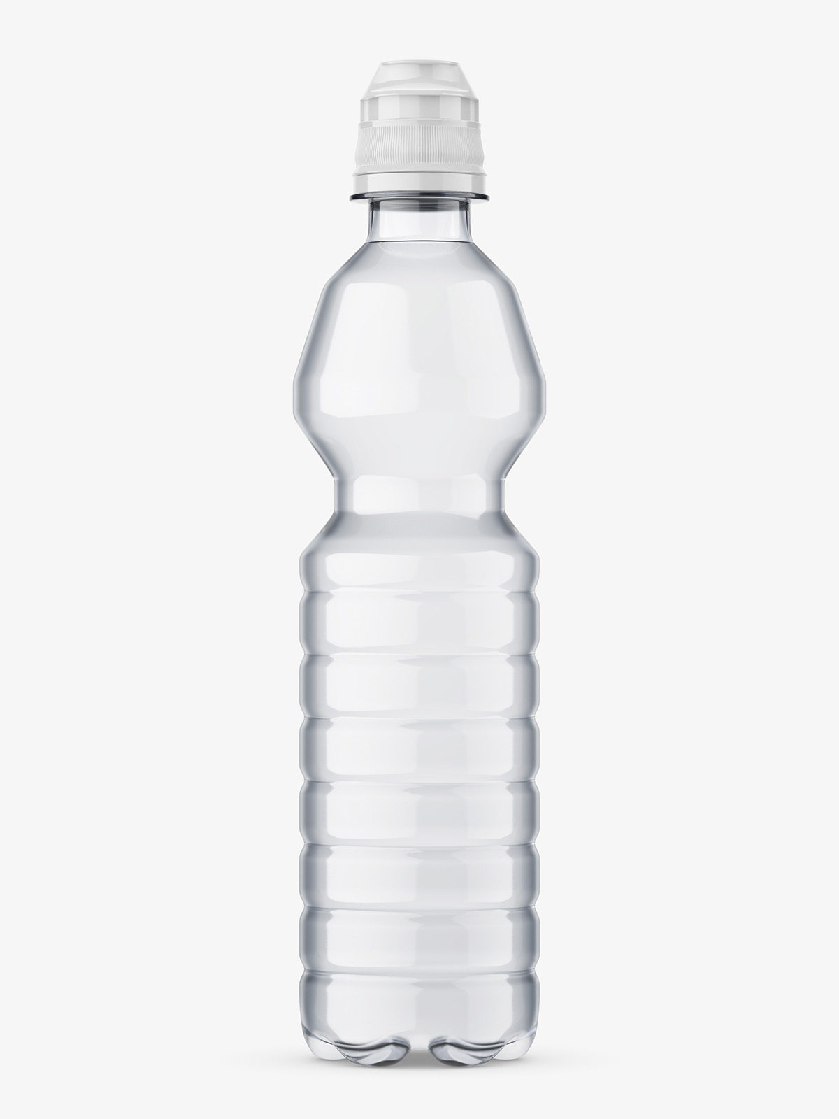 Clear mineral water bottle mockup made in high resolution. You can paste your own label design and change color of the cap and liquid.