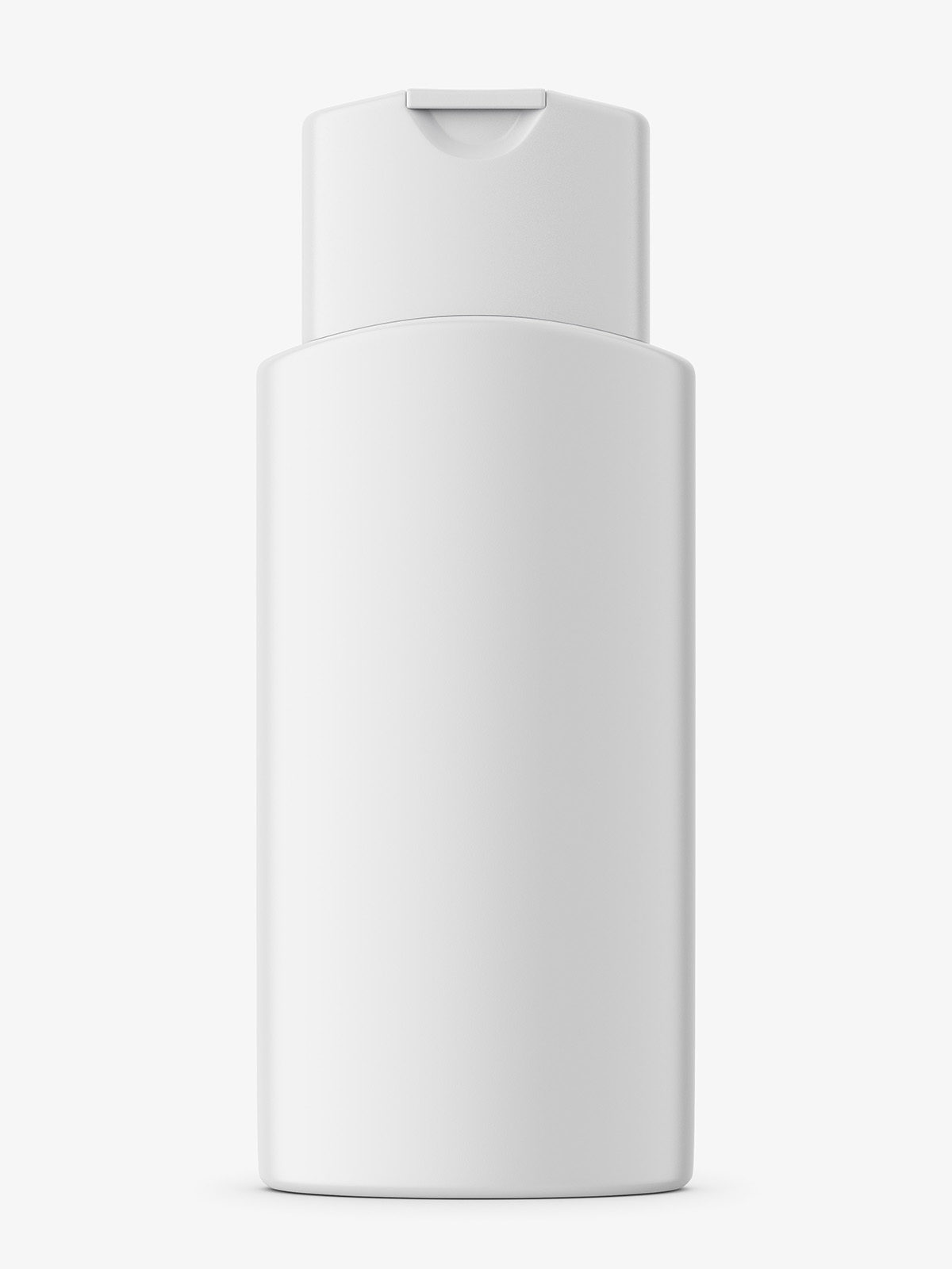 Universal shampoo bottle, used for packaging of shampoos, and conditioners, gels and other hygiene cosmetics. The mockup was prepared so as to allow for adding any color to both the bottle and the snap-on cap.