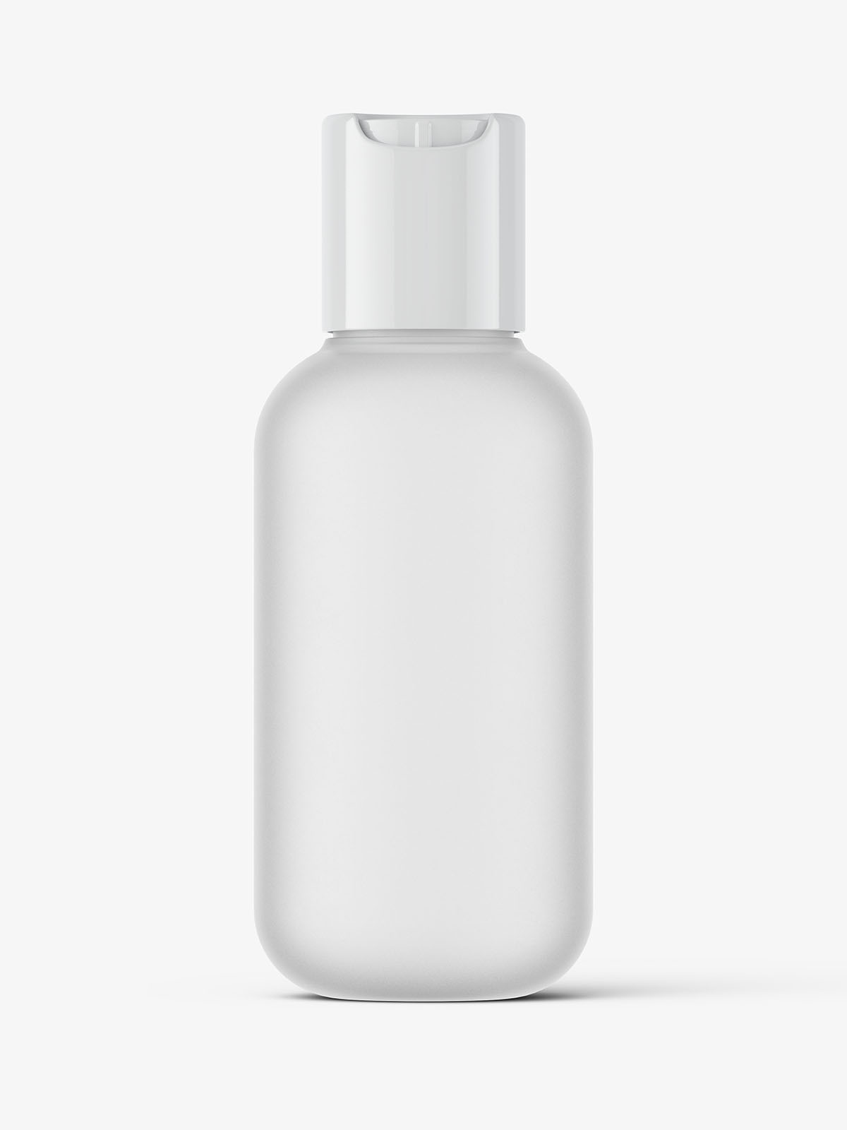 Easy to use cosmetic bottle with disc top lid mockup. Thanks to the fact that you can adjust every element of the bottle to your needs, you can create a beautiful and convincing visualization of your design in just a few moments.