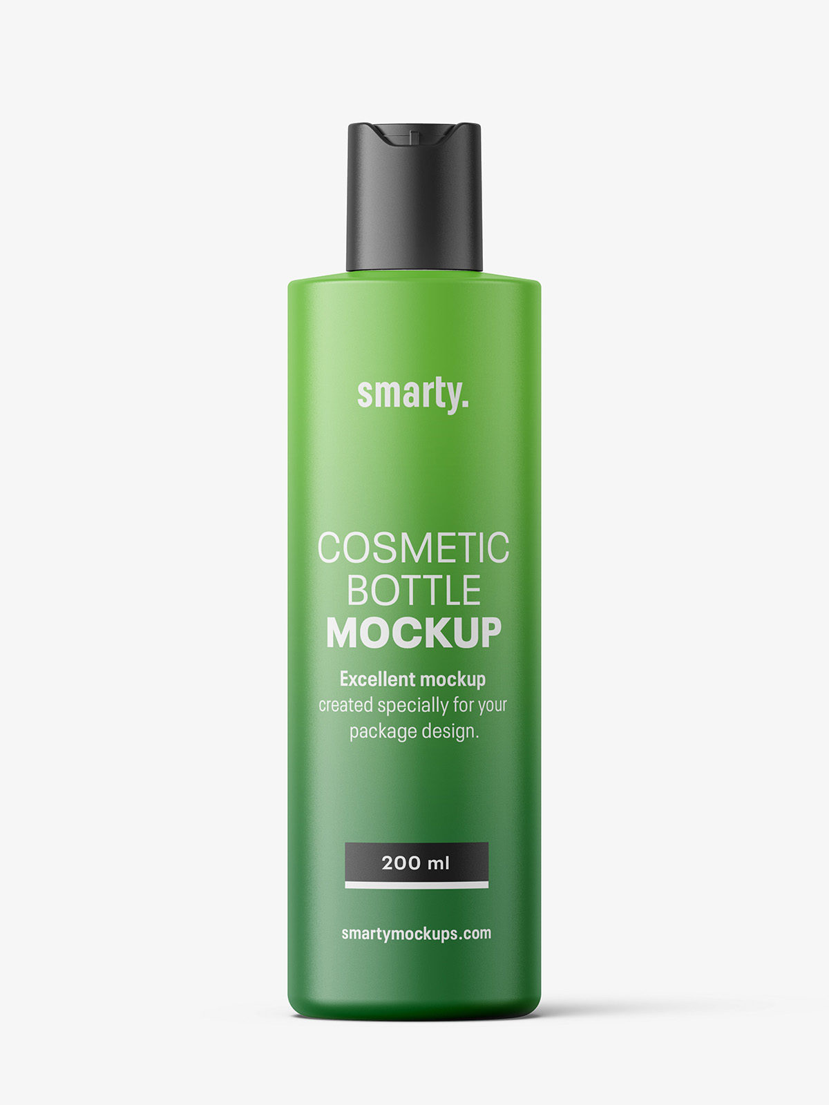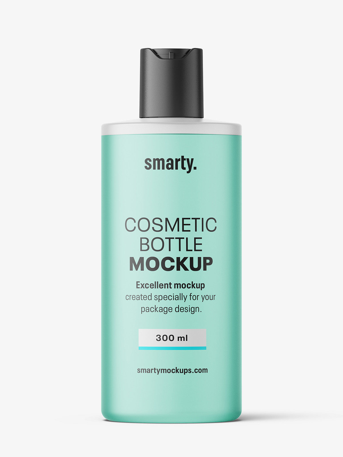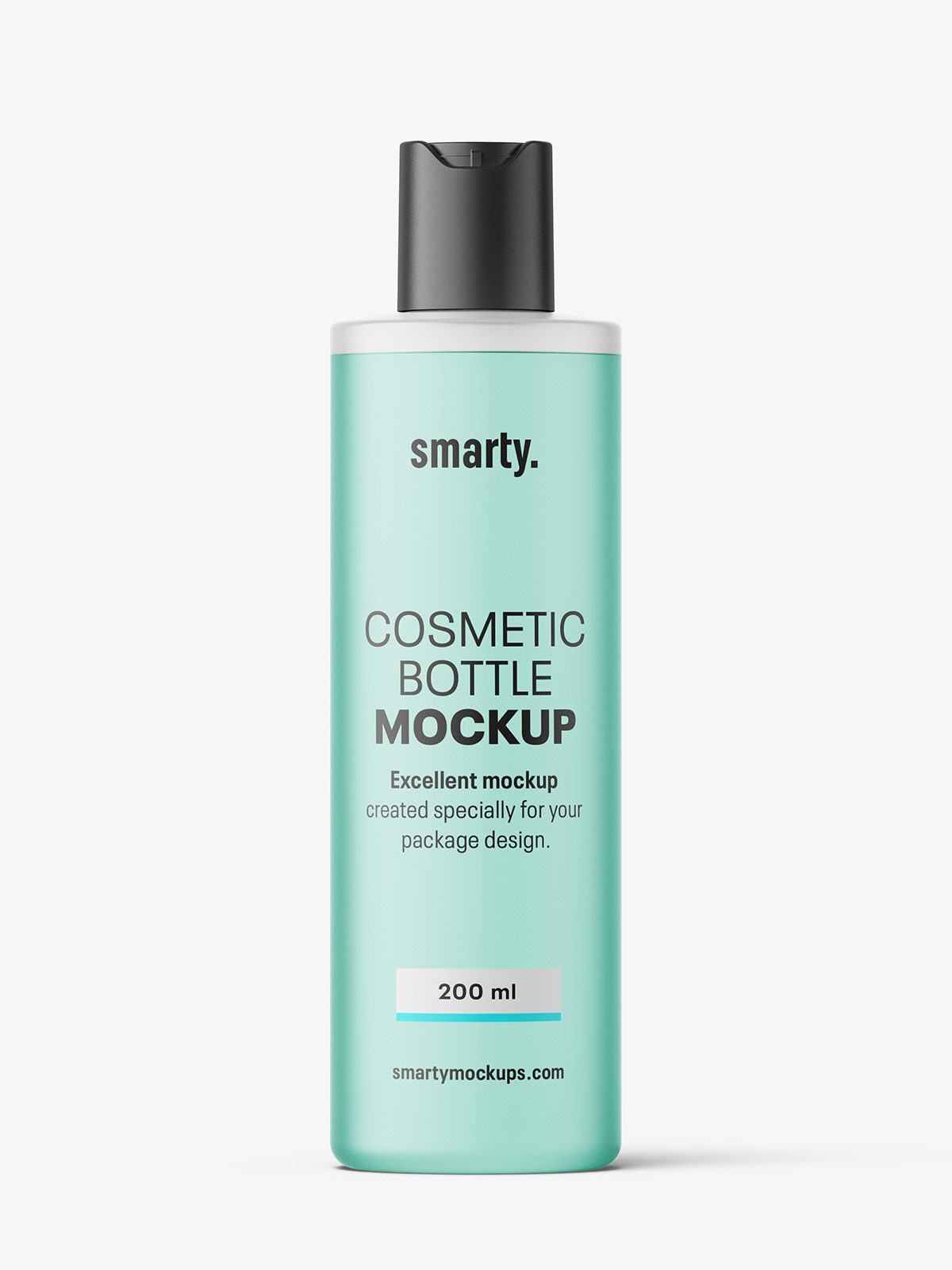 Cosmetic bottle with disctop mockup prepared in high resolution. Label covers entire bottle and cap color can be changed.