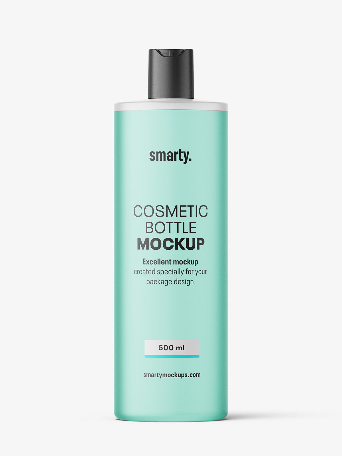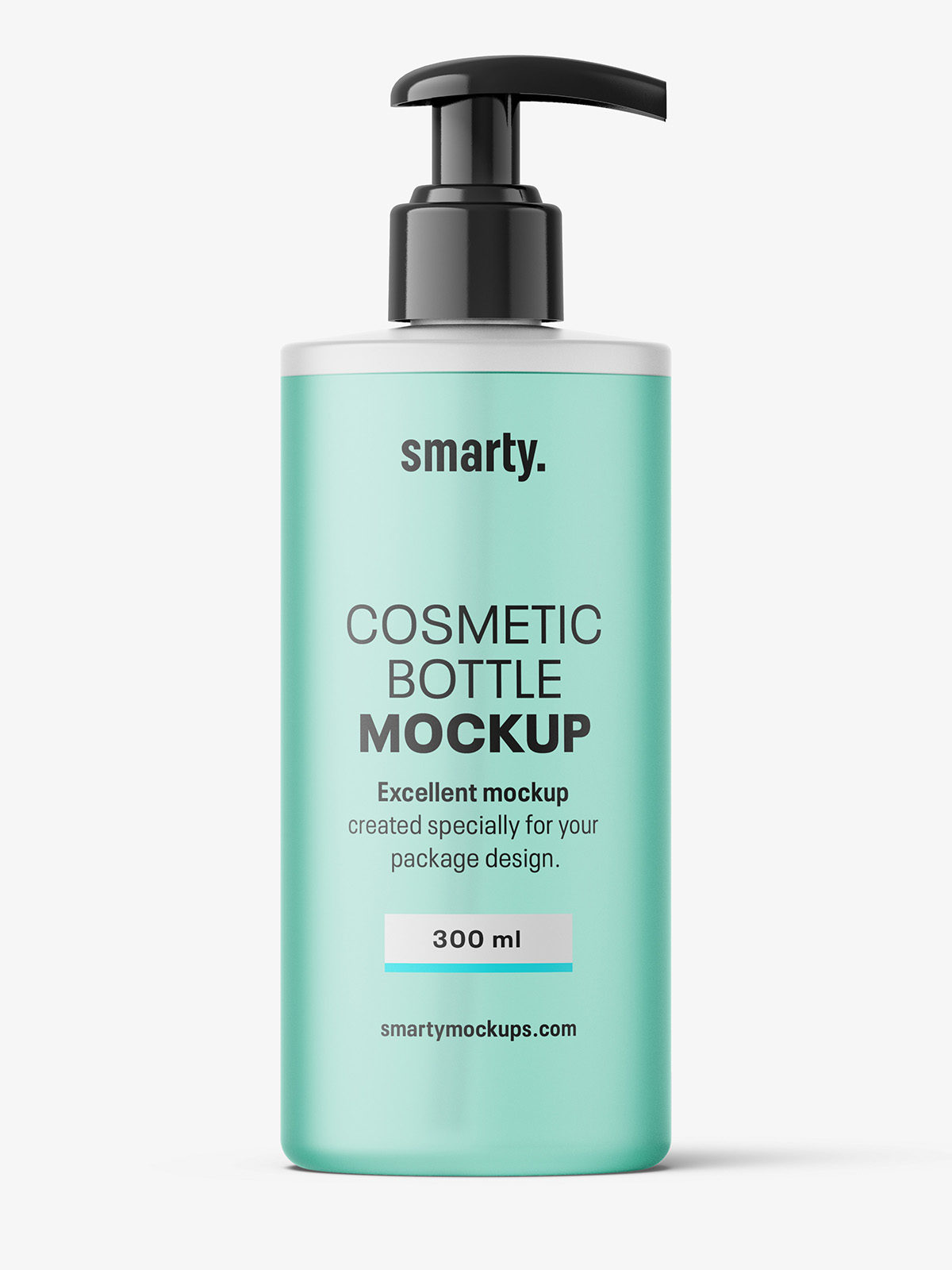 Cosmetic bottle with pump mockup prepared in high resolution. Label covers entire bottle and cap color can be changed.