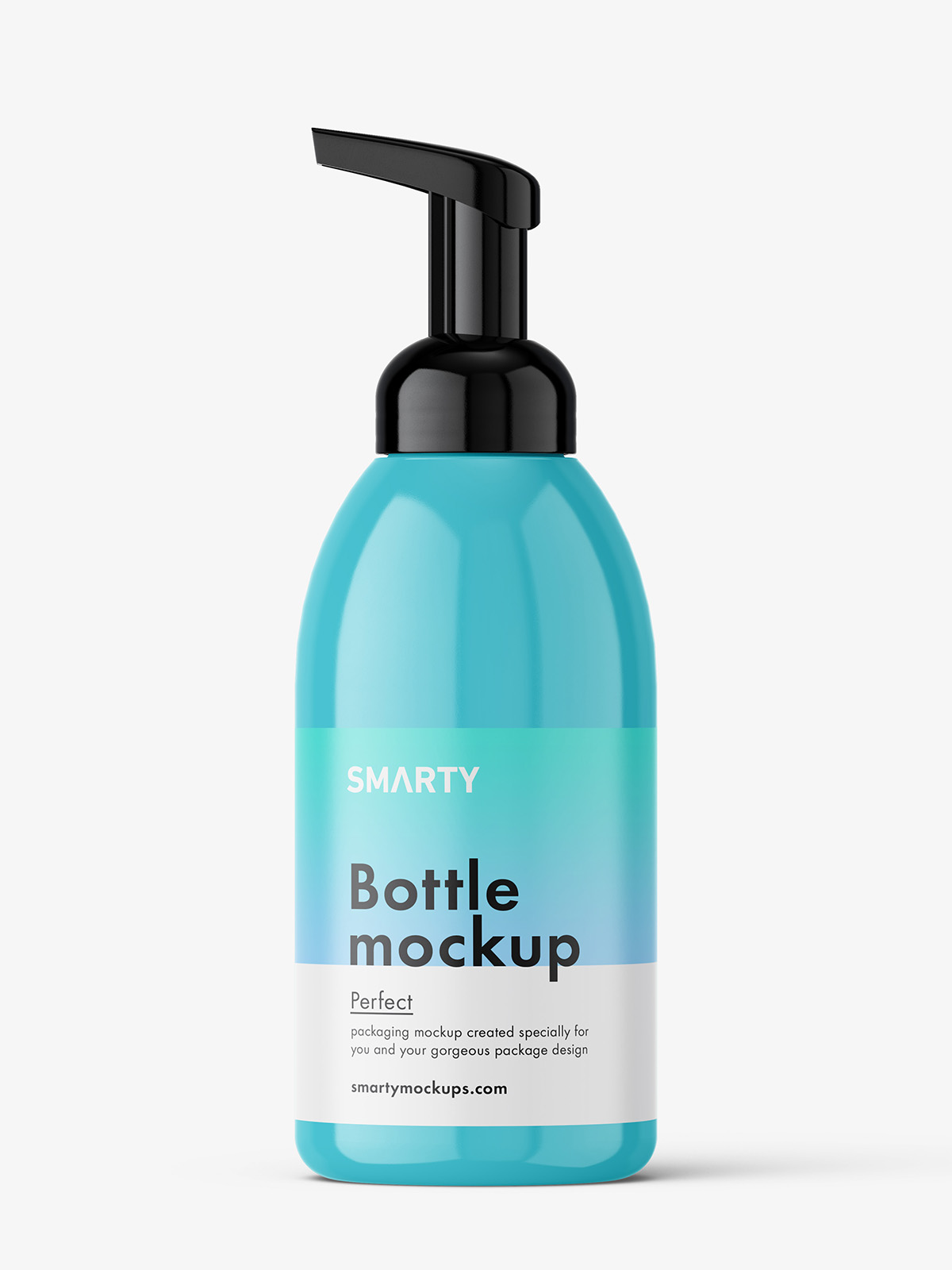 Cosmetic bottle with foamer mockup. Prepared with ability to paste your own project and set cap color.